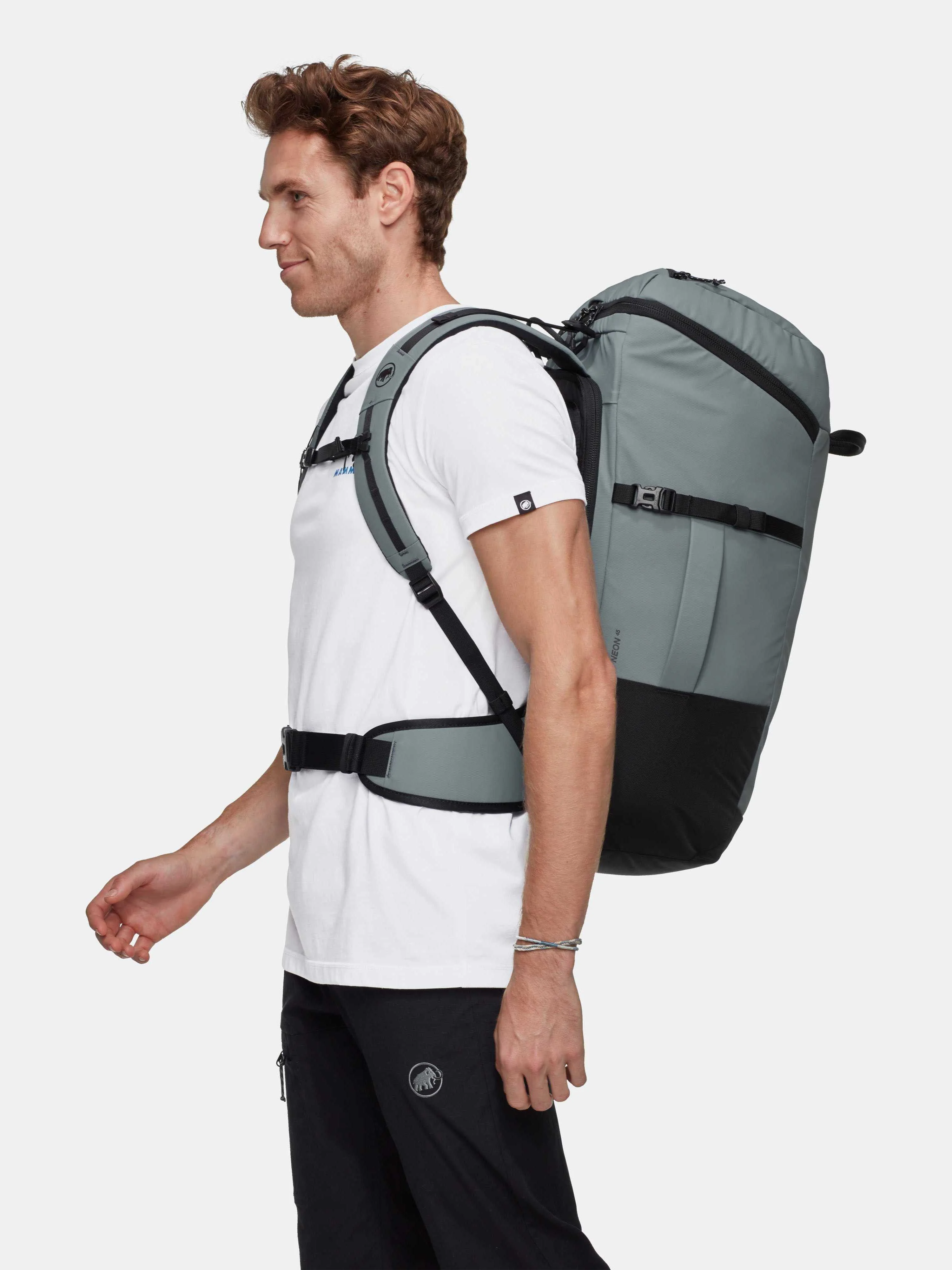 The Mammut Neon 45 is a large-capacity and practical backpack designed for carrying climbing and alpine equipment with ease. Its design allows quick and convenient access to the main compartment via both a top opening and a wide rear panel, making gear organization simple and efficient. A stable base keeps the pack upright when placed on the ground, while side handles make carrying and handling easier. This backpack is well suited for climbing days as well as extended outdoor activities.