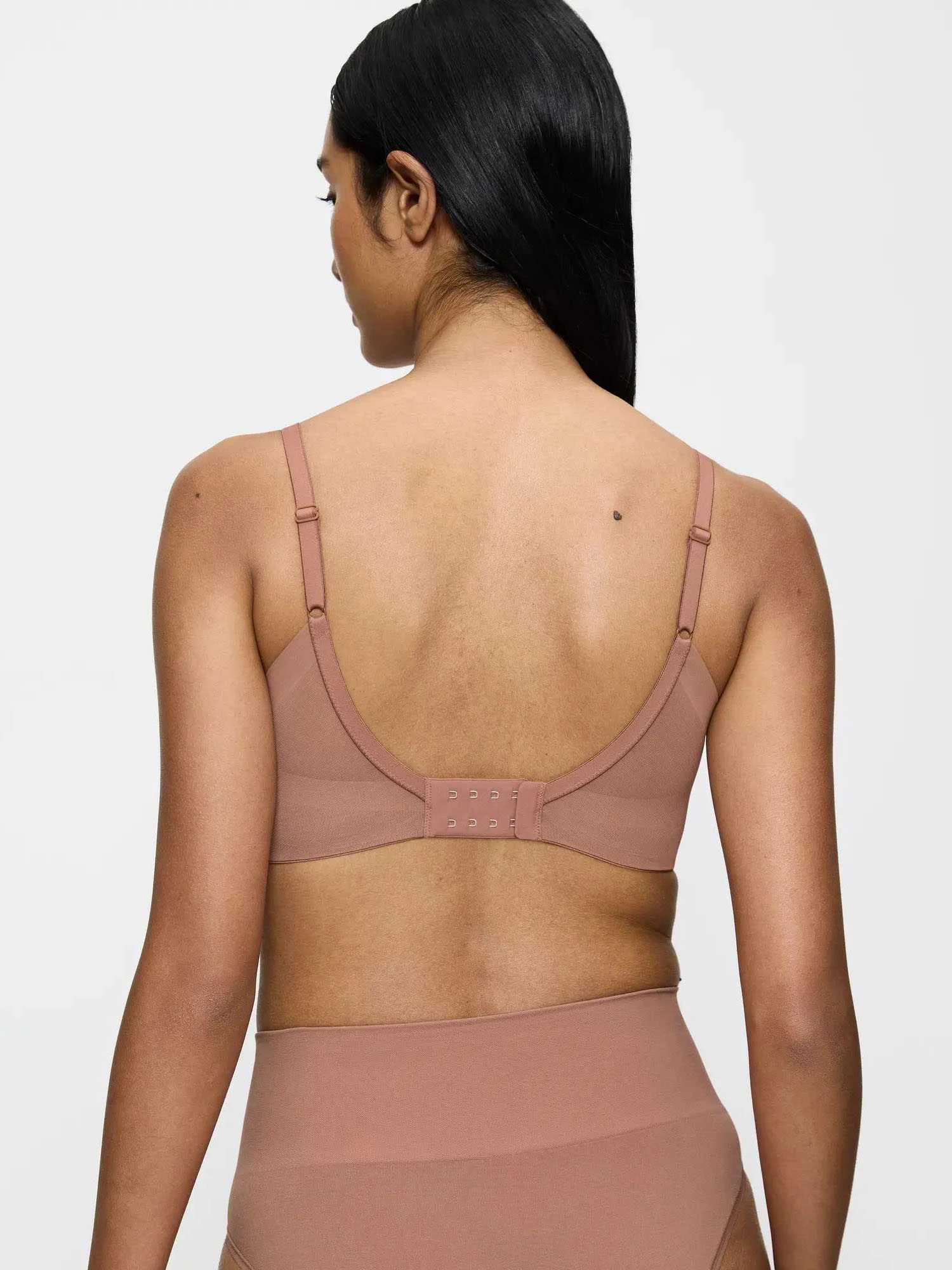 Non-wired, padded smoothing bra