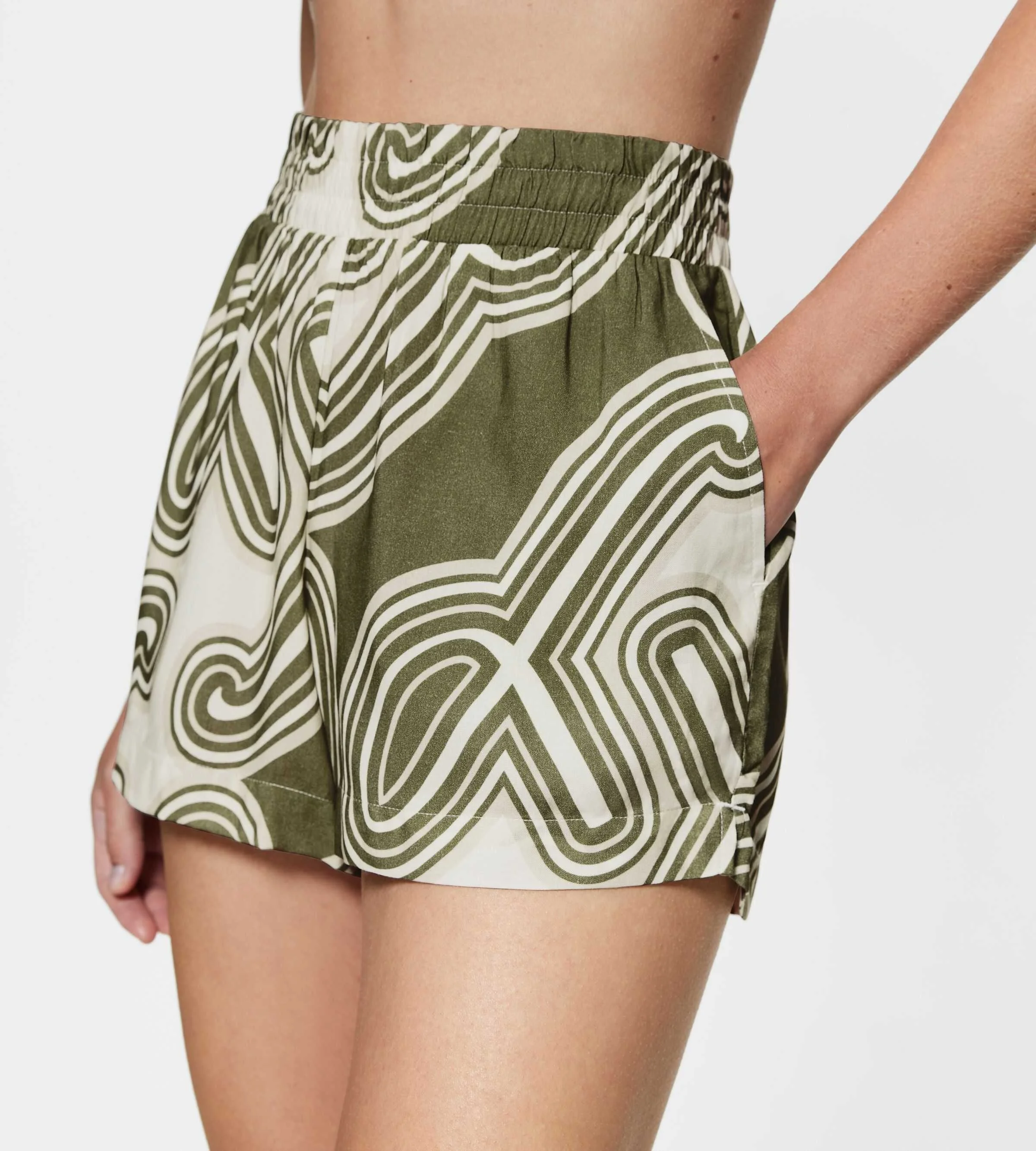 • Elastic waistband with hidden side pockets.