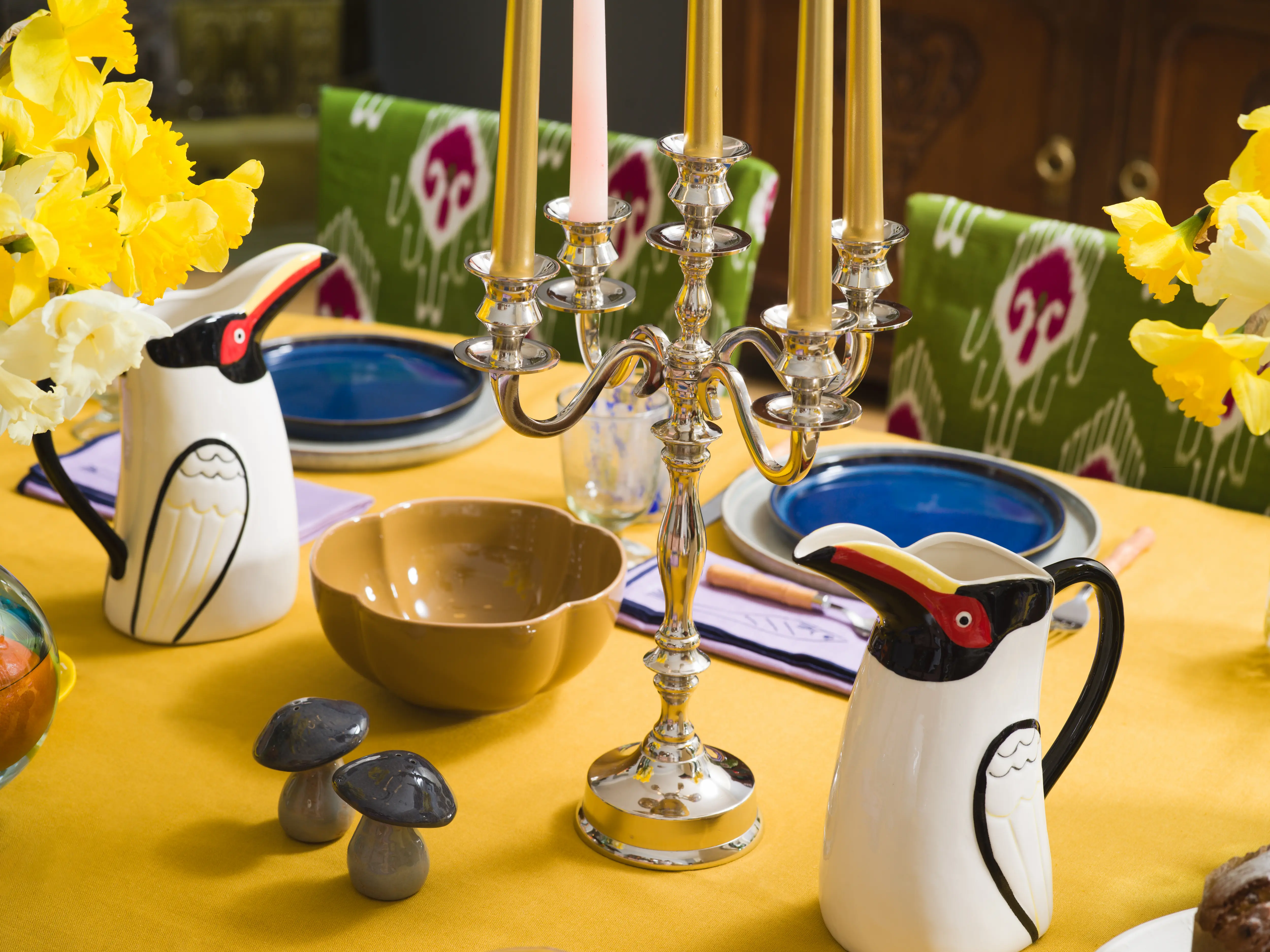 “I love creating contrasts, and I love objects that carry a sense of humor and a bit of eccentricity. For example, I really love these penguin jugs, because anything that makes you smile when you interact with it and puts you in a good mood is a good object.”