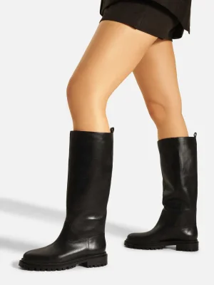 Arezzo - Black Leather Long Shaft Riding Boot