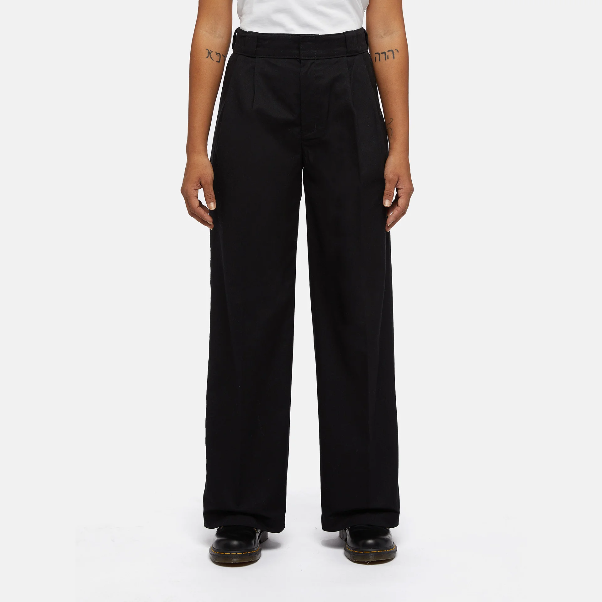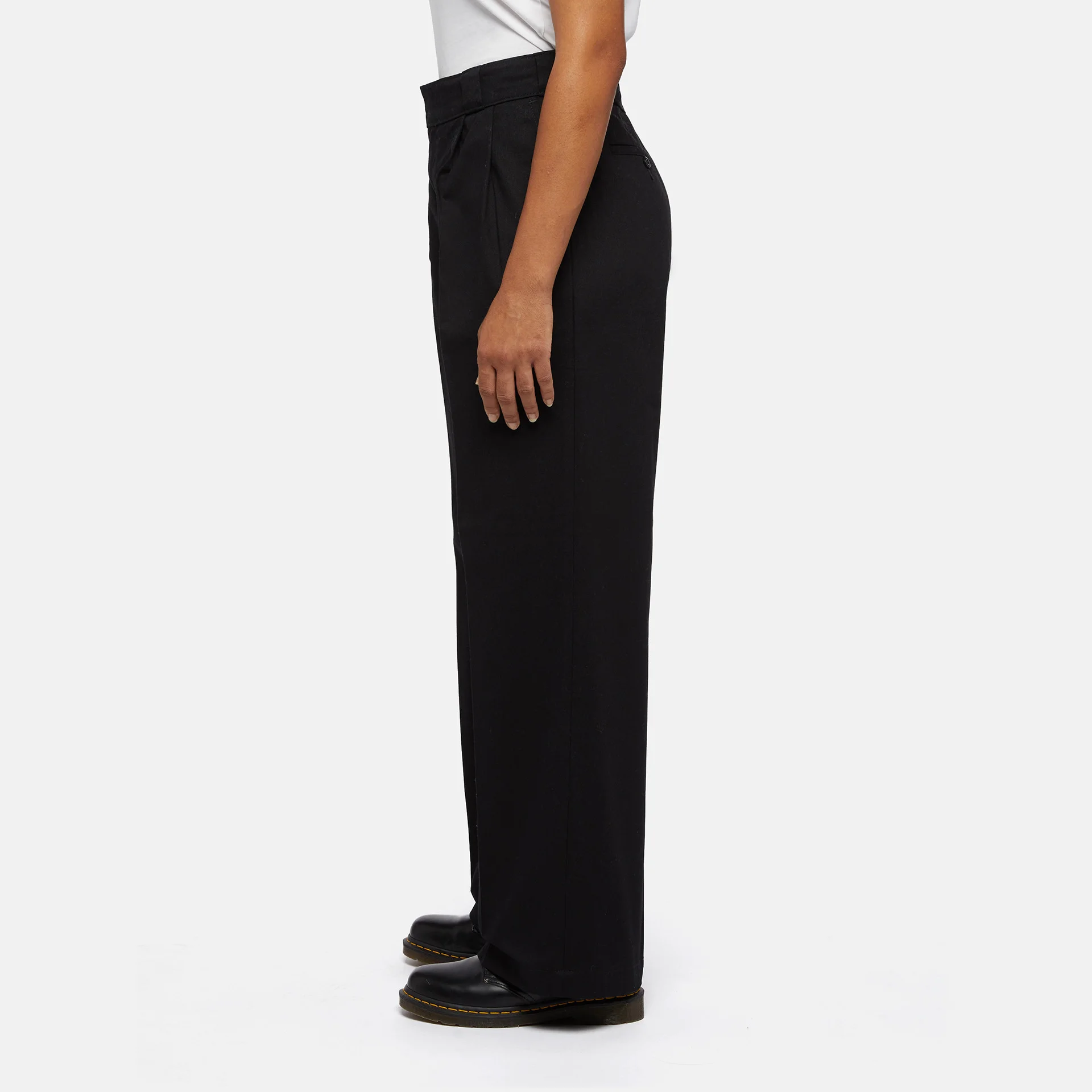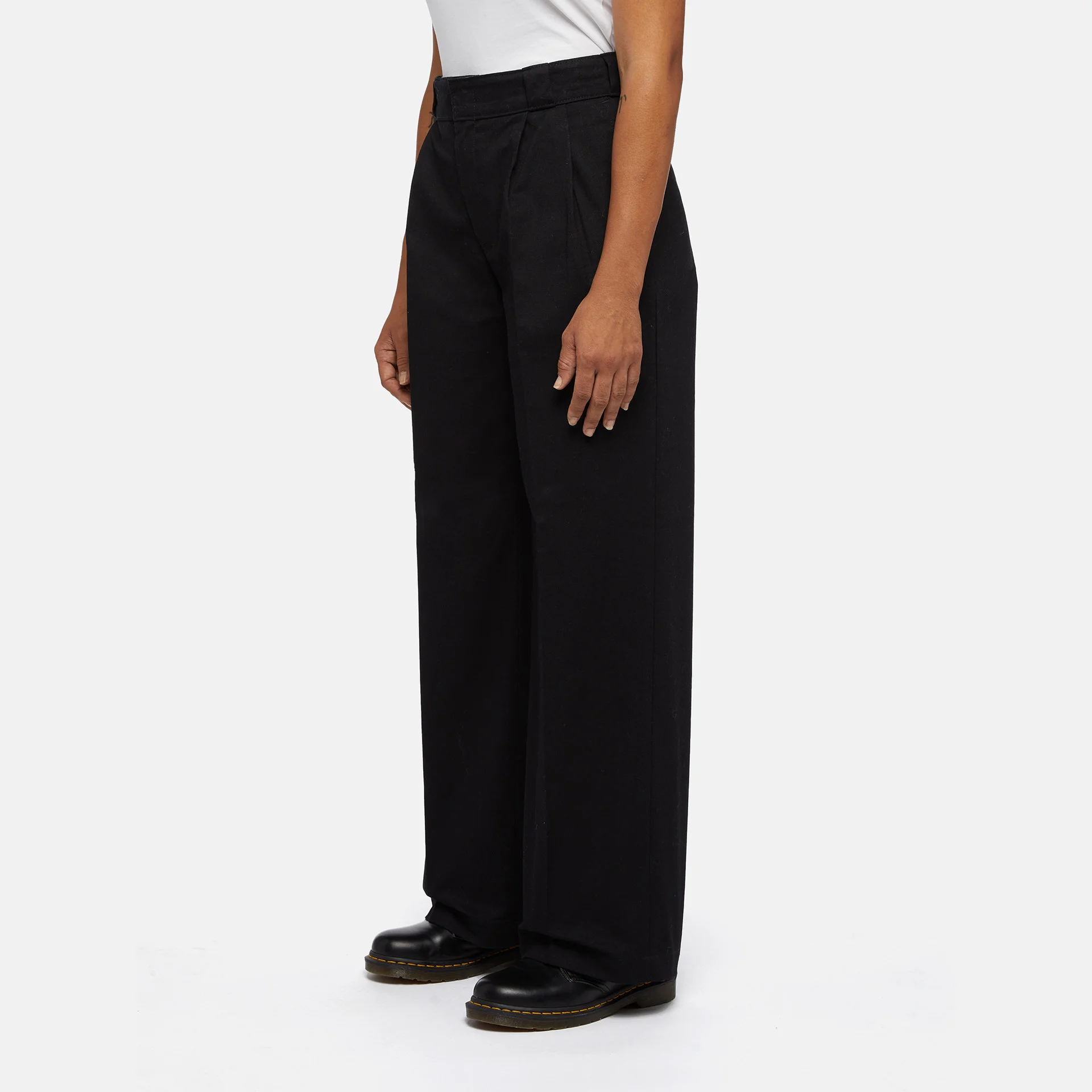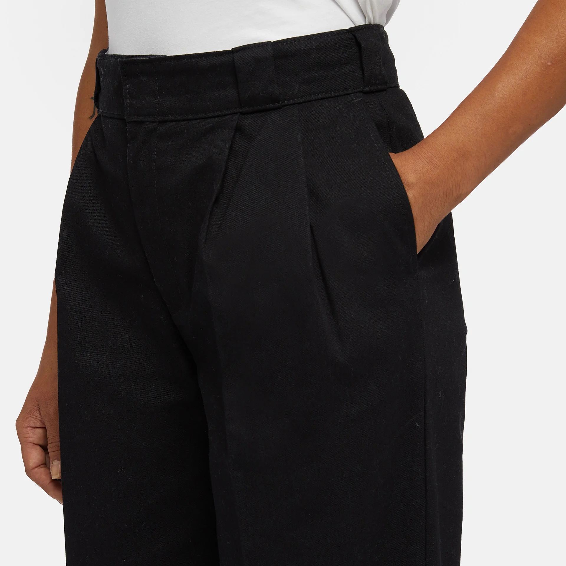Dickies Pleated Multi Pocket Work Trousers – Workwear-inspired trousers that combine classic elements with a modern look. Designed with a relaxed, wide-leg cut and pleat details, they deliver both functionality and an elegant appearance. Made from durable 66 polycotton, they feature multiple functional pockets: two side, two back, and an additional open pocket on the right back side with a woven Dickies label. Seven belt loops and a secure closure complete the design.