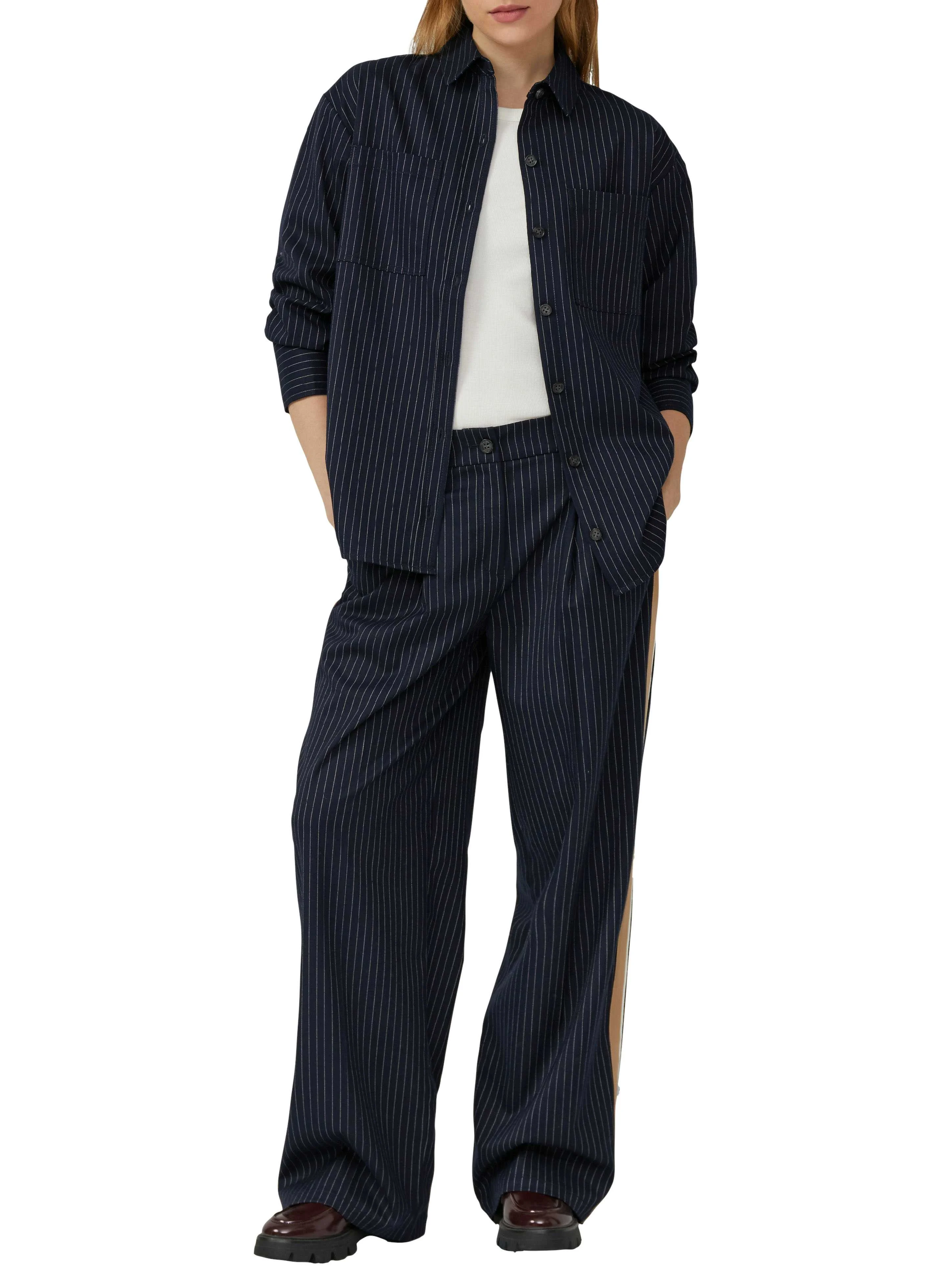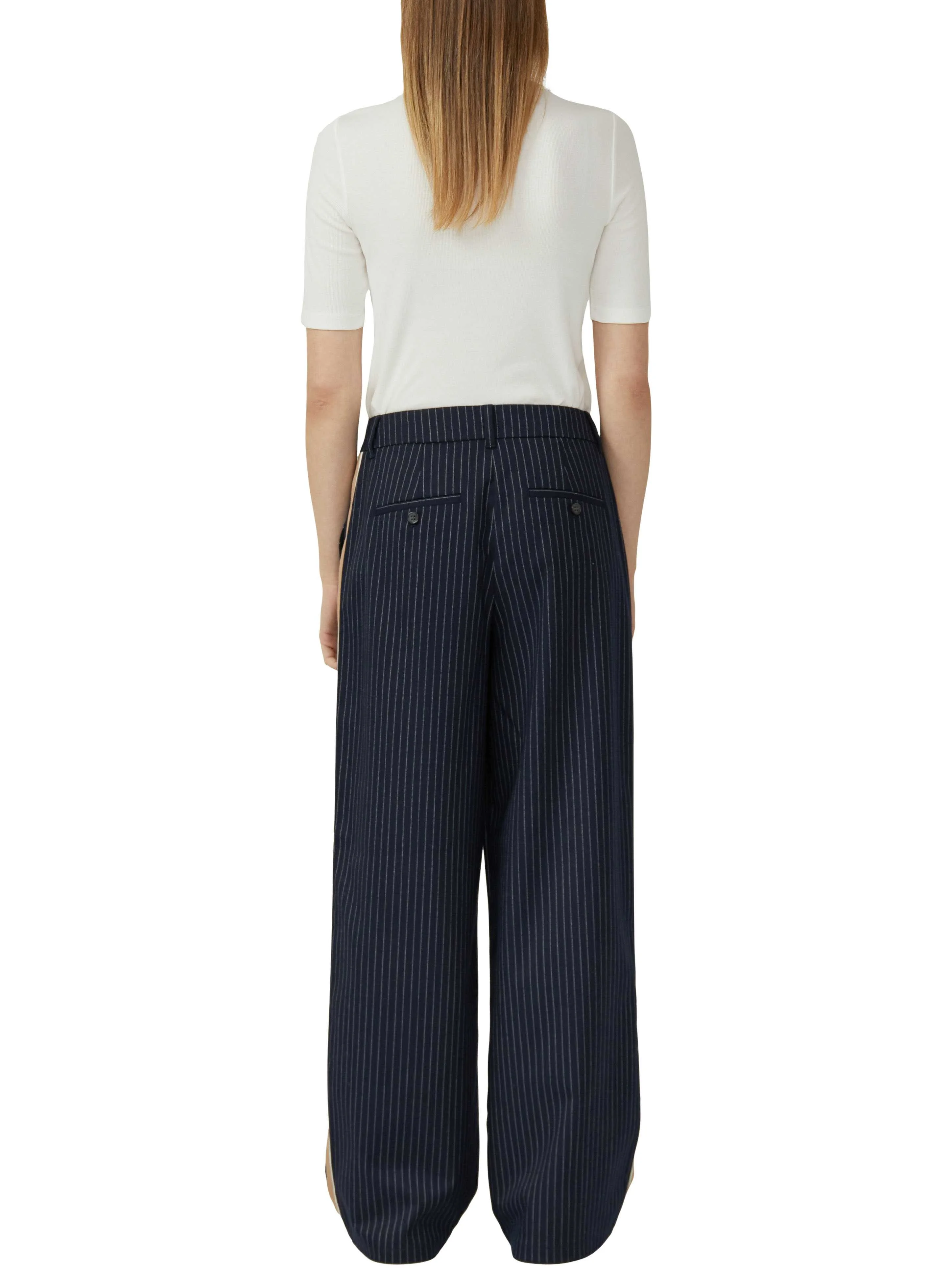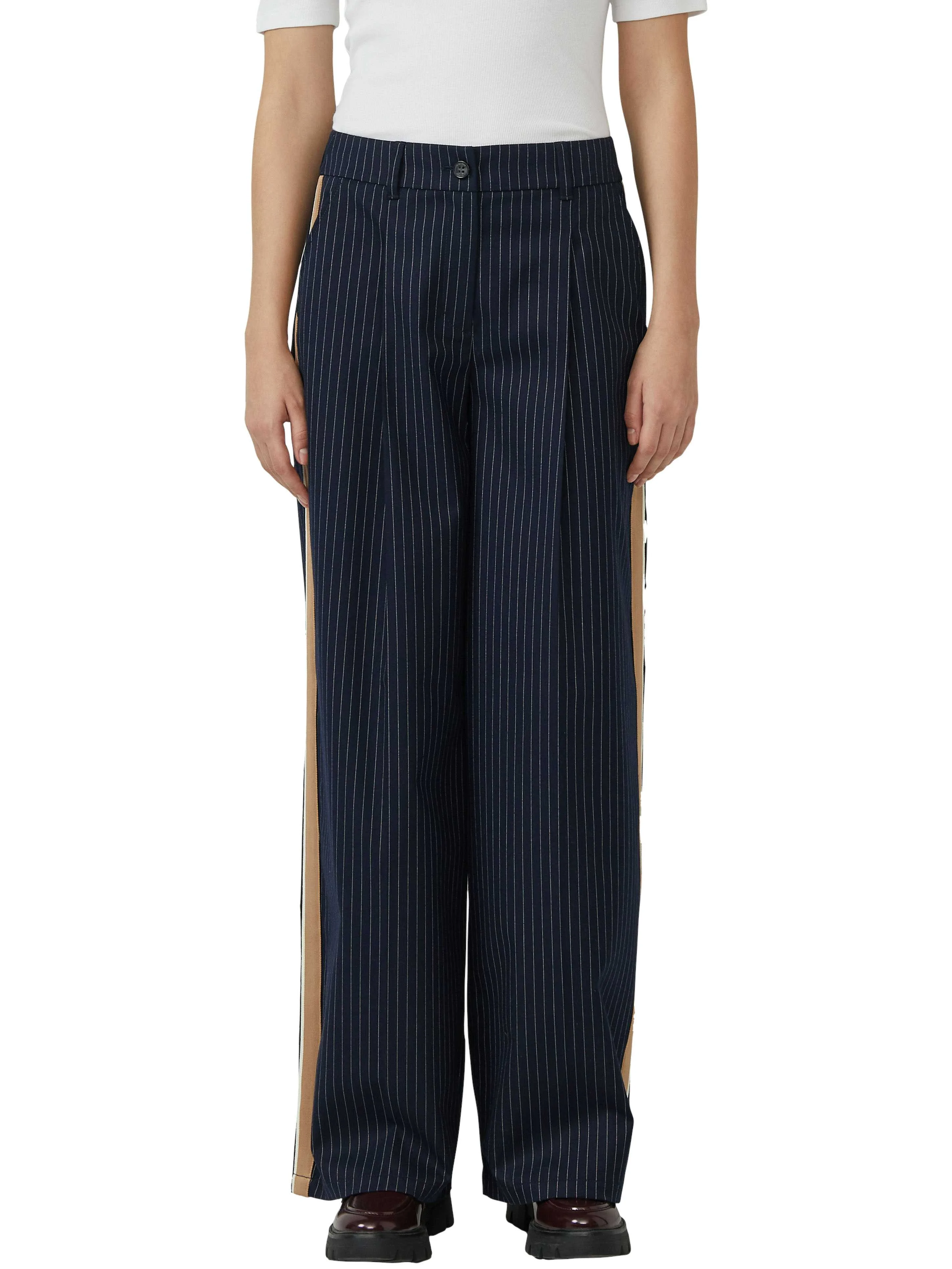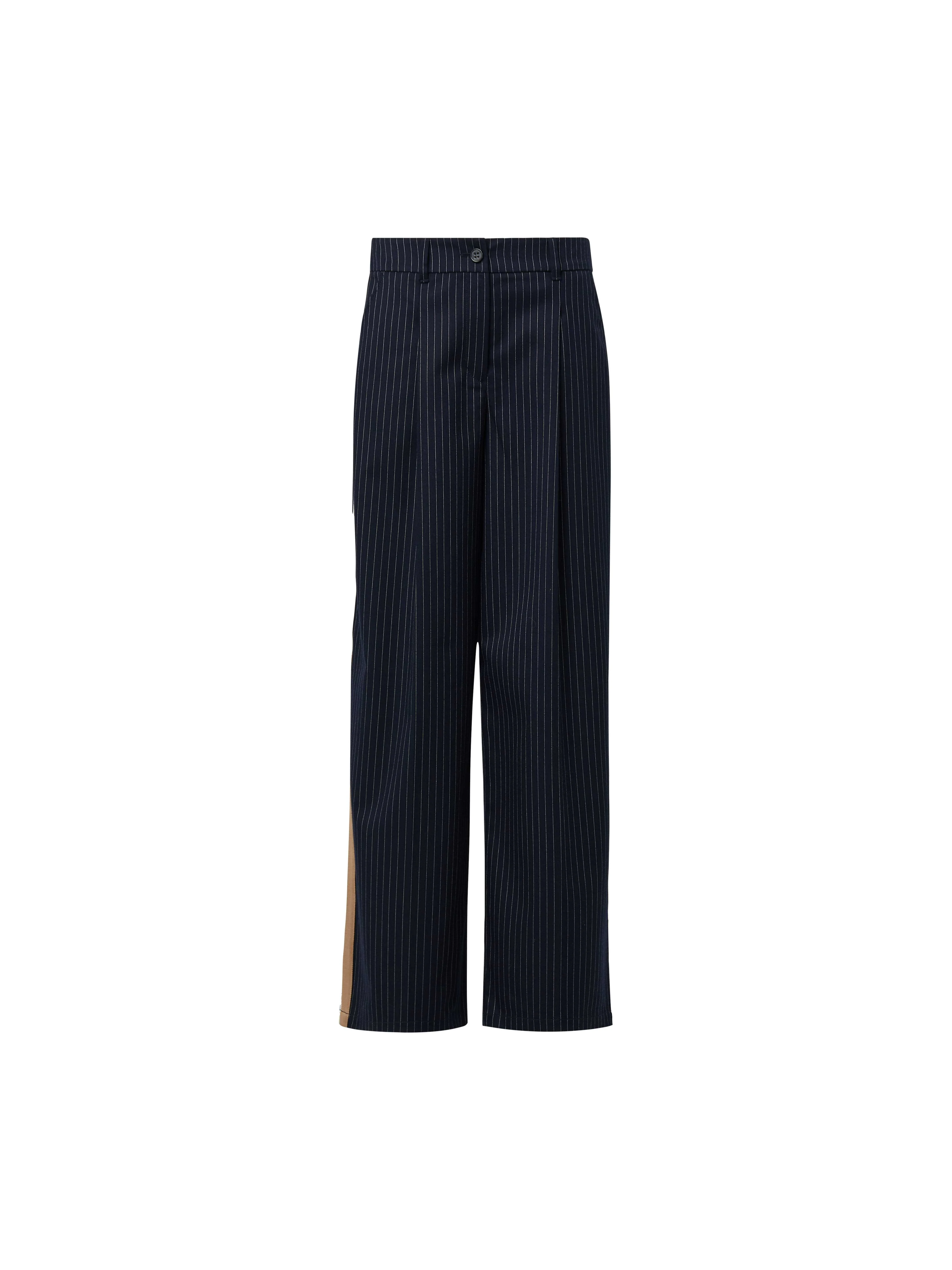 s.OLIVER - High-rise trousers with pleats and pinstripes