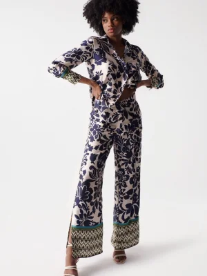 Salsa Jeans - SATIN-FEEL TROUSERS WITH FLORAL PRINT