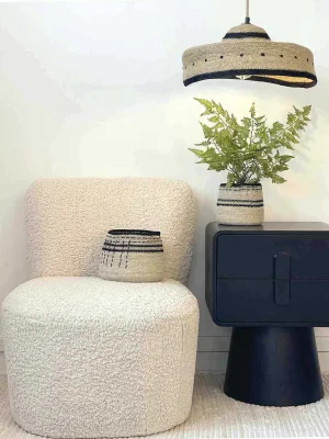 Handmade natural plant fiber pendant lampshade (this product may have imperfections due to its artisanal manufacturing). You can adapt our socket pendants to match your decor. Compatible with E27 Max socket. Indoor use only. (Sold without bulb and without electrical system).