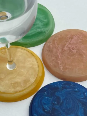 MÆGEN Resin Coaster - Coral – a unique handmade coaster that adds a pop of color and sophistication to any interior. Crafted from high-quality, durable resin, it features a distinctive marbled pattern that makes each piece one of a kind.
