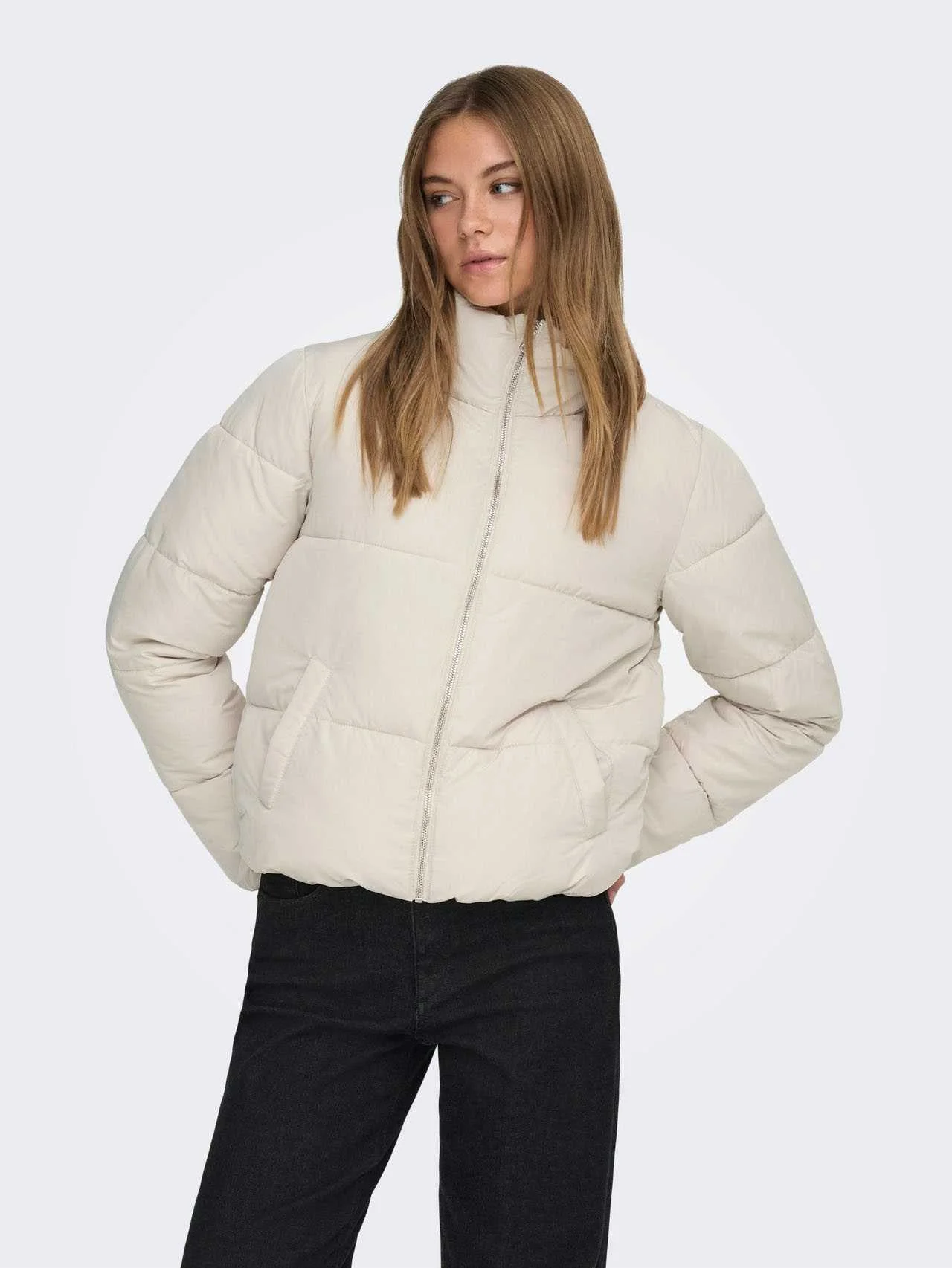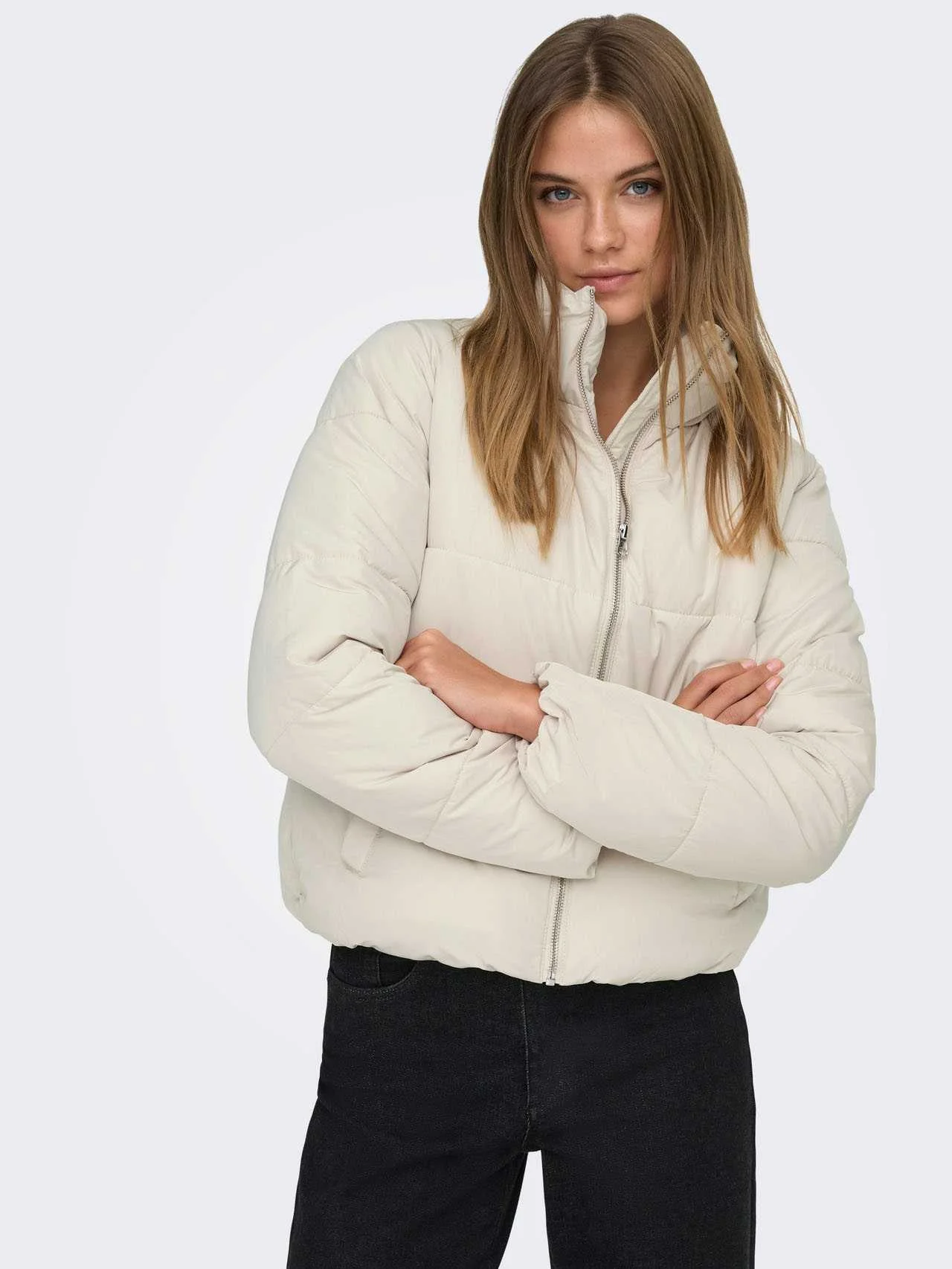 ONLY Puffer Jacket – Face the winter season with a warm and stylish jacket. The short length, high collar, and voluminous design create a comfortable look suitable for both everyday wear and special occasions.