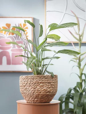 Give your interior a natural touch with basket Jorck from the Mica Decorations collection. The basket is made by hand from sea grass and is therefore very environmentally friendly. The light brown colour also creates a warm atmosphere. Great for many interiors! For protection, the basket has a plastic liner on the inside. Ideal to put a nice plant in, but also to store some things. The Jorck baskets are available in different colours and sizes. This version is light brown and has dimensions of H19 x Ø22 cm.