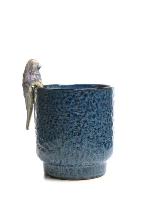 Mica Decorations - Blue Pot, Bird, 18.5 x 12 CM