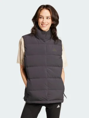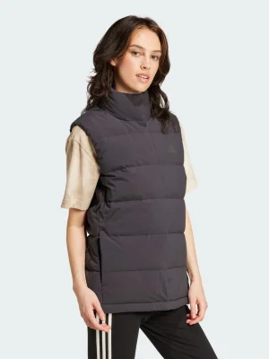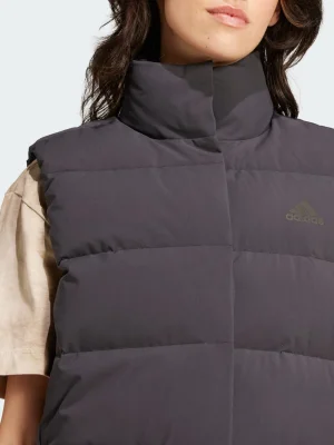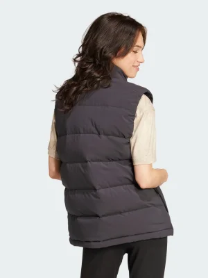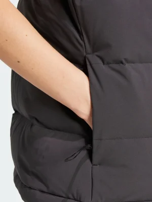Wintry weather calls for warm layers, and this adidas down vest is one of your most versatile. You can layer it over a t-shirt or wool sweater to match the conditions, and you'll stay warm with 600-fill down. A water-repellent finish comes to the rescue when it's soggy out, while zip pockets offer safe transport for your phone.Made with a series of recycled materials, and at least 60% recycled content, this product represents just one of our solutions to help end plastic waste.