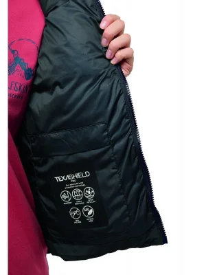Bring the style on your cold weather walks with the NORDLICHT VEST. Inside the quilted exterior is a generous filling of 550 RDS certified down tfor cozy warmth, while the recycled face fabric features TEXASHIELD PRO technology, offering protection from wind and light precipitation. 2 hand pockets keep hands warm when you forget your gloves.