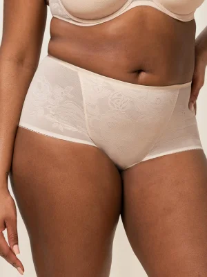 The Wild Rose Sensation Maxi by Triumph is proof that there is beauty to be found in shapewear. Made with elegant, flat lace, this brief has been designed to offer a medium-level shaping effect, complementing the natural silhouette. This sophisticated style provides a superb level of comfort with breathable fabric, wide sides, and flat seams, and is perfect when paired with one of the Shape Wild Rose Sensation bras.