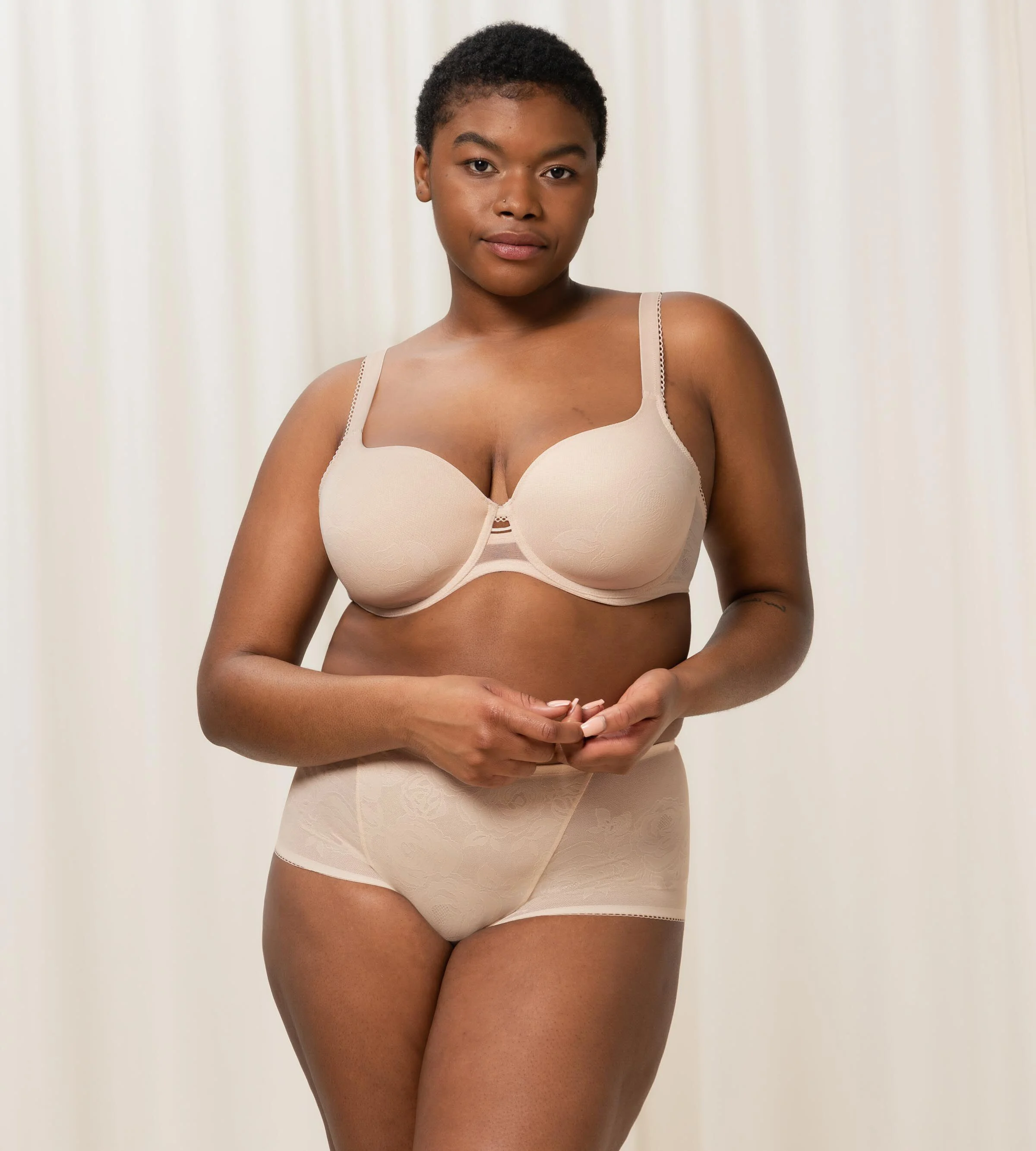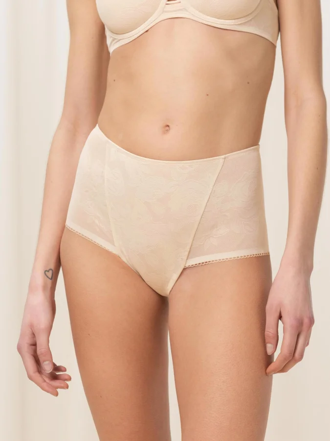 The Wild Rose Sensation Maxi by Triumph is proof that there is beauty to be found in shapewear. Made with elegant, flat lace, this brief has been designed to offer a medium-level shaping effect, complementing the natural silhouette. This sophisticated style provides a superb level of comfort with breathable fabric, wide sides, and flat seams, and is perfect when paired with one of the Shape Wild Rose Sensation bras.