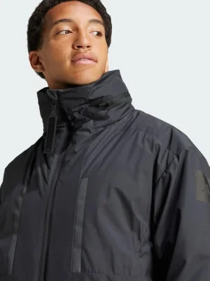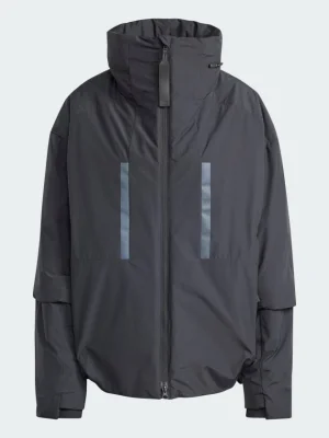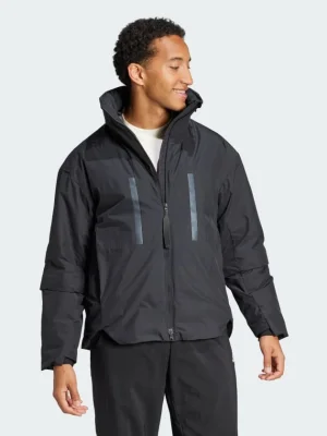 Plans may change and obstacles may arise, but this adidas bomber jacket keeps you comfortable as you navigate your day. Zip on the lightweight warmth of down plus PrimaLoft® insulation that resists water. Cruise through light rain or fog with a water-repellent coating to shield you. Whatever small essentials you need on the go, zip and snap pockets give them a home. This product is made with at least 70% recycled materials. By reusing materials that have already been created, we help to reduce waste and our reliance on finite resources and reduce the footprint of the products we make.
