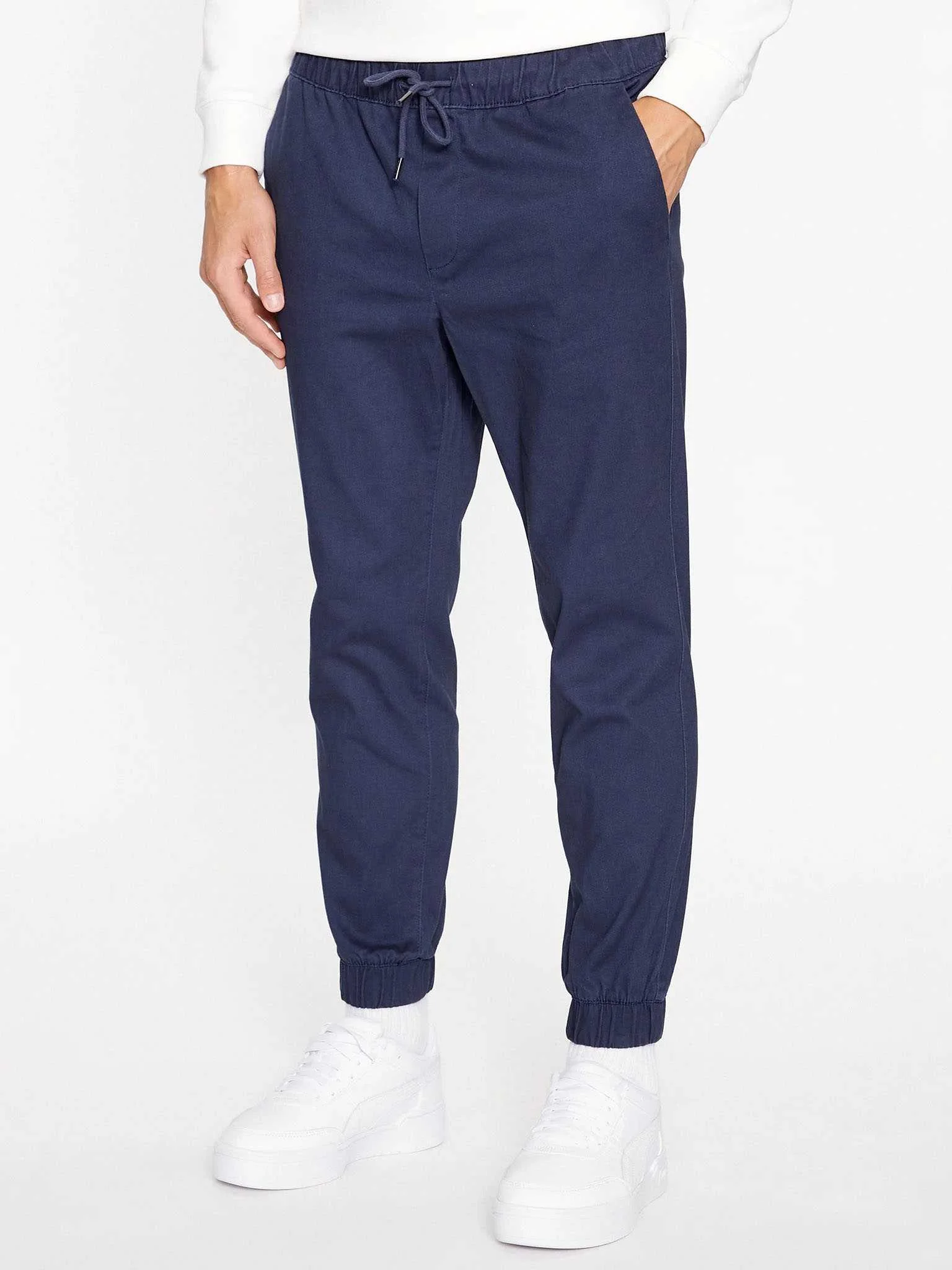 Jack&Jones JPSTGORDON DAVE JOGGER – comfortable jogger-style trousers with an elastic waistband and drawstrings for a relaxed fit. Made from stretch fabric for added comfort. Designed in a chino style with a regular waist and tapered legs, combining casual ease with a polished look.