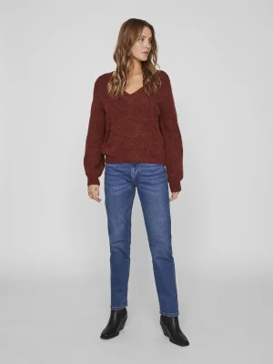 VILA - VIJAMINA REV V-NECK L/S KNIT TOP - NOOS