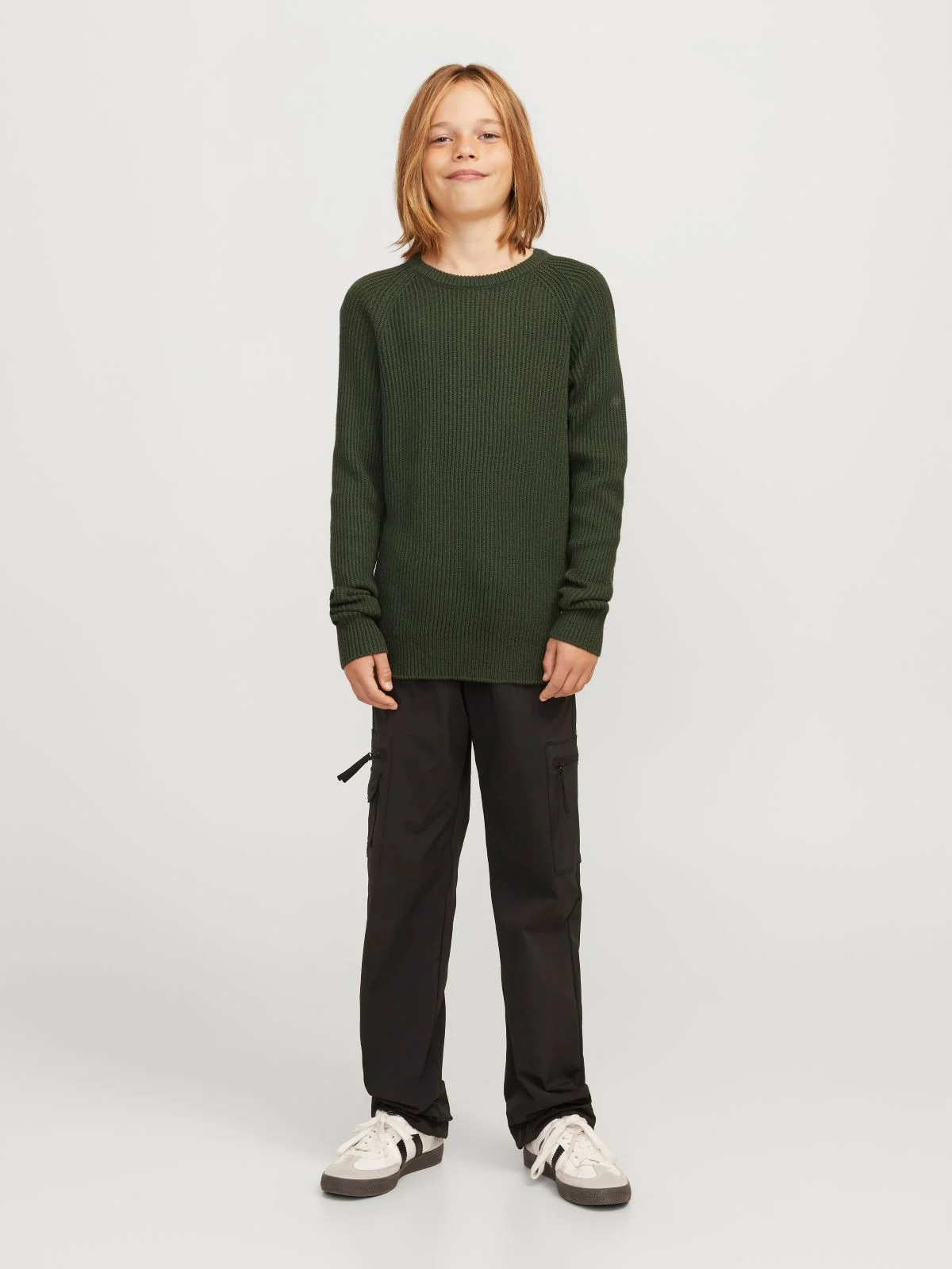 Jack & Jones Junior Rib Knit Pullover – a comfortable and stretchy knitted sweater that easily complements any style. The vertical ribbed texture adds flexibility and gives the garment a modern look. The relaxed fit ensures comfortable wear, making it ideal for everyday use during colder days.