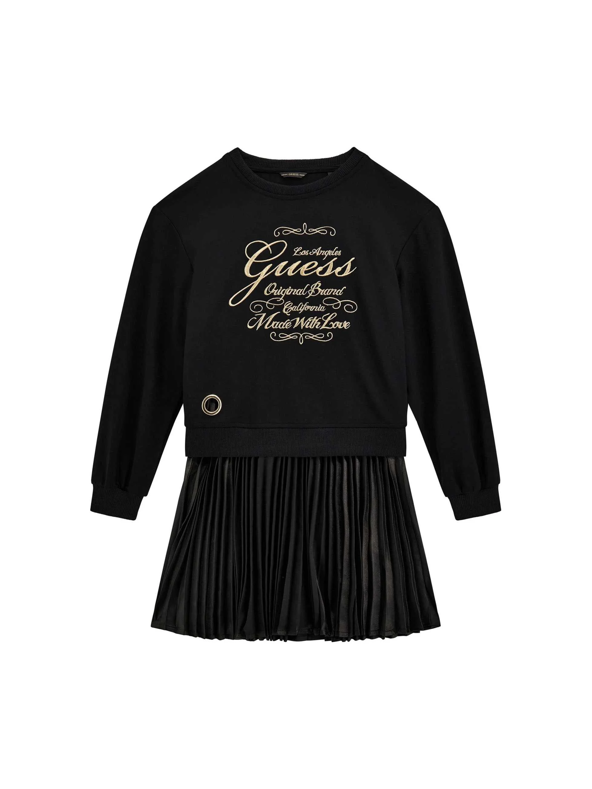 GUESS - MIXED FABRIC PLEATED LS DRESS