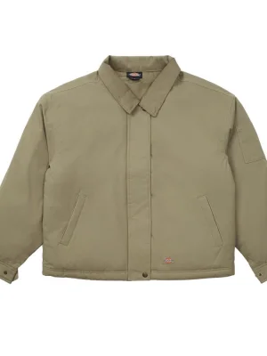 Dickies Plains Jacket – A practical jacket inspired by workwear style. Crafted from lightweight, water-resistant fabric, it includes a double lining for warmth. The design features a corduroy collar, concealed zip and button fastening for an added touch of elegance, angled side pockets, a sleeve pocket, and an inner compartment for easy storage of everyday essentials.