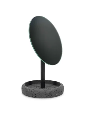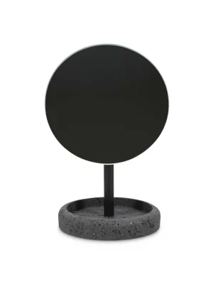 Introducing the Mirror 13xH23cm with stand in anthracite grey from our Suds collection. Perfect for adding style to your bathroom, its durable polyresin design mimics natural stone while offering lightweight practicality. Ideal for those who cherish sophisticated spaces.