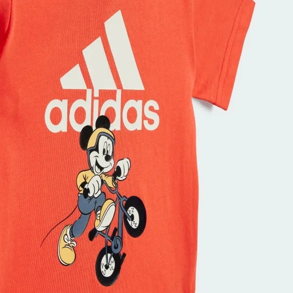 Your future athlete is ready to take on any adventure in this playful adidas x Disney tee and shorts set. In celebration of the world's biggest sporting stage, a colourful graphic shows Mickey Mouse himself competing in BMX. Whether your infant is pushing around their scoot bike or just exploring at the playground, they'll feel like an honorary member of the team every time they wear this set. Made from soft, lightweight jersey, this vibrant two-piece is perfect for all-day comfort and play.