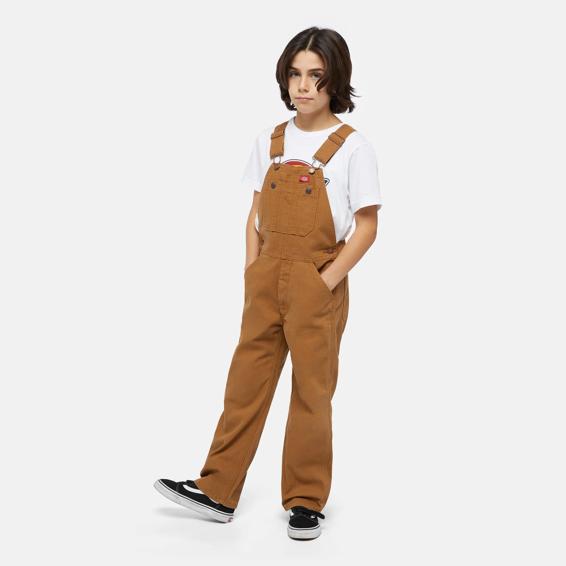 Dickies Kids' Denim Bib Overalls – A kids’ version of the brand’s most iconic model, designed for everyday adventures. Made from durable, easy-to-wash denim with a regular fit and practical design. The model features a large bib pocket and adjustable shoulder straps to ensure the perfect fit for growing kids. A durable, comfortable, and practical choice for every after-school adventure.