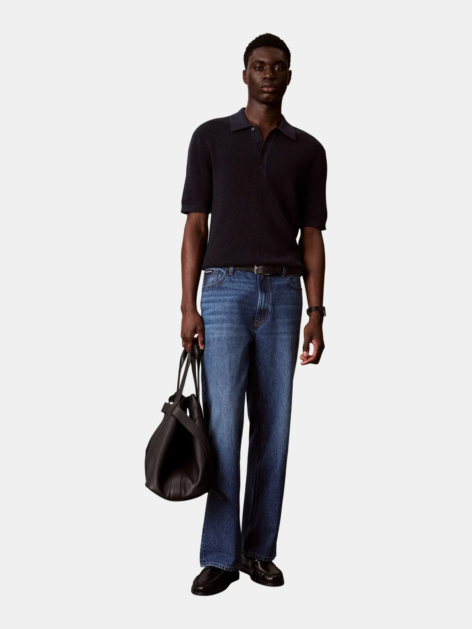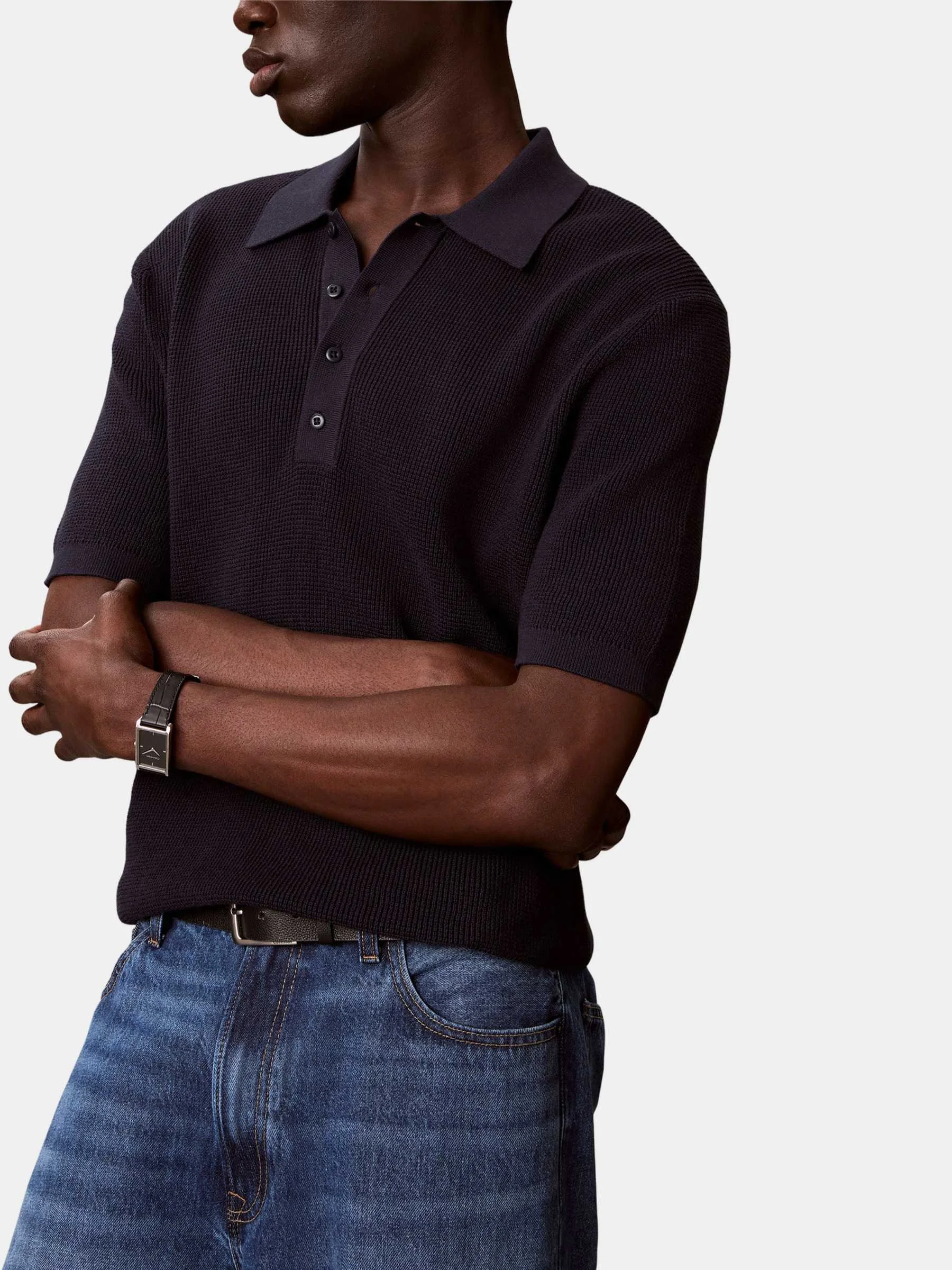 CLAVIN KLEIN JEANS - SS COTTON WAFFLE POLO COLLARSWTR
