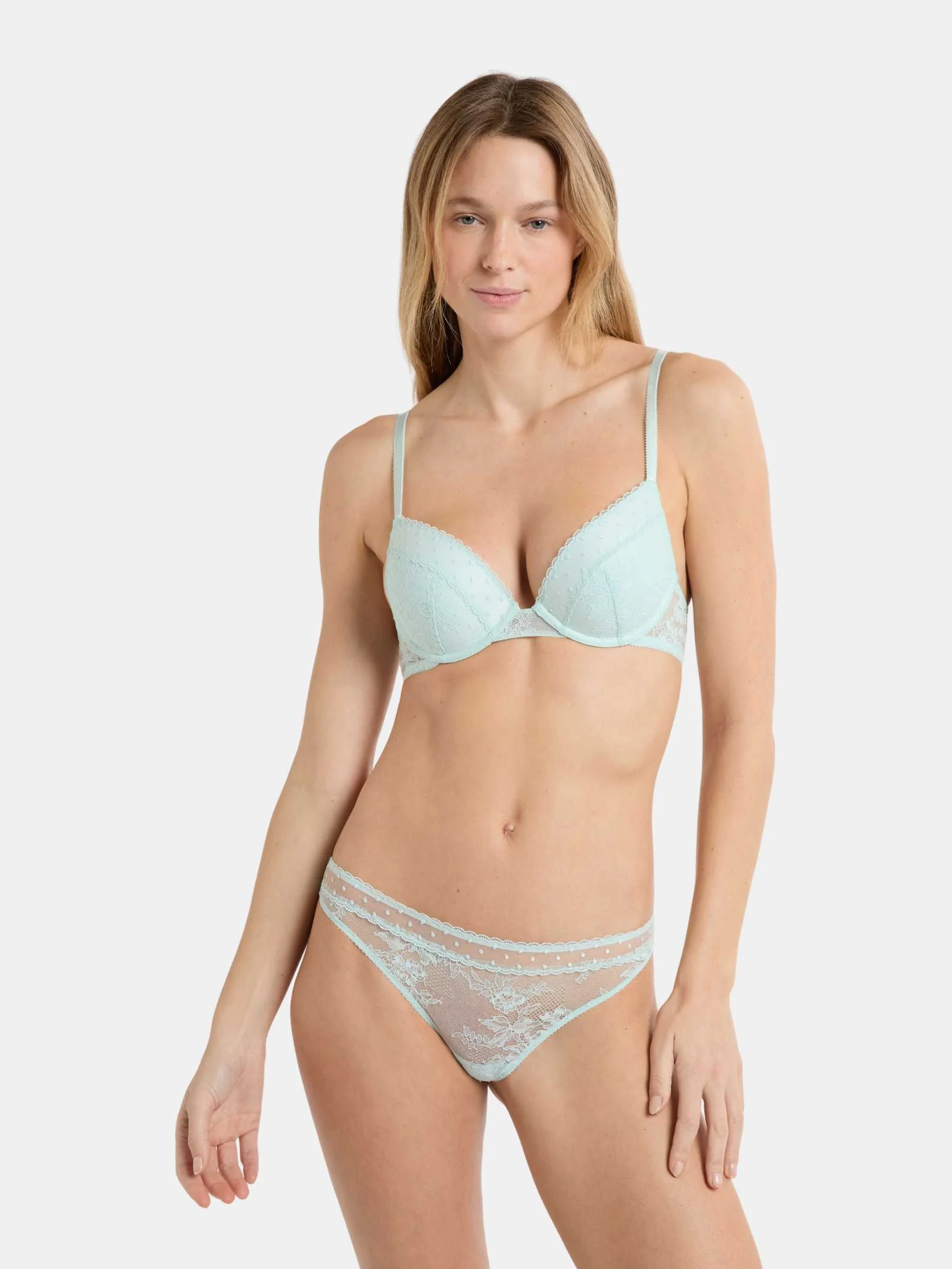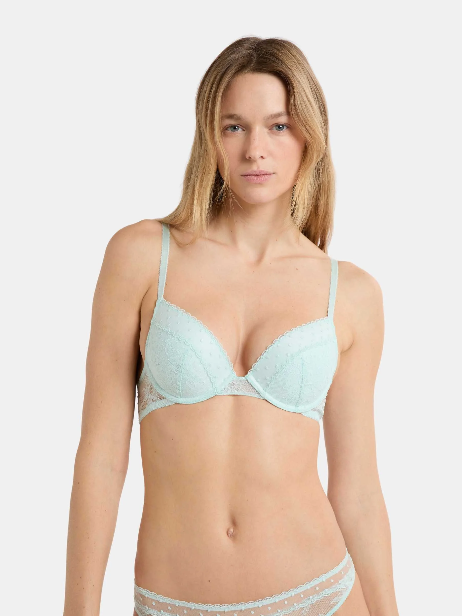 CUP LINING: 100,00% Polyester; EMBROIDERY: 66,00% Polyester; 34,00% Polyamide; LACE: 89,00% Polyamide; 11,00% Elastane;