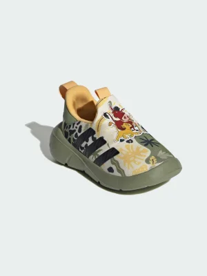 From the backyard to the savanna, little cubs are ready to explore in these infants' adidas sneakers. They fit both feet so toddlers can pull them on and get going without fuss. A soft lining hugs the foot in place while flexible EVA cushioning makes every step feel effortless. Graphics inspired by Disney's "The Lion King" add a playful touch.