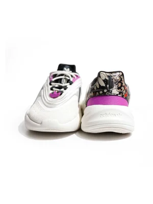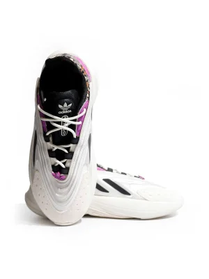 Stylised, sporty trainers made in part with recycled materials.Get dressed with MVP confidence. These adidas OZELIA shoes feature a bold butterfly-print upper and pops of purple throughout for a fun '90s vibe. The Adiprene midsole cushioning will keep you comfy as you bounce from place to place on your busy days. Made with a series of recycled materials, this upper features at least 50% recycled content. This product represents just one of our solutions to help end plastic waste.