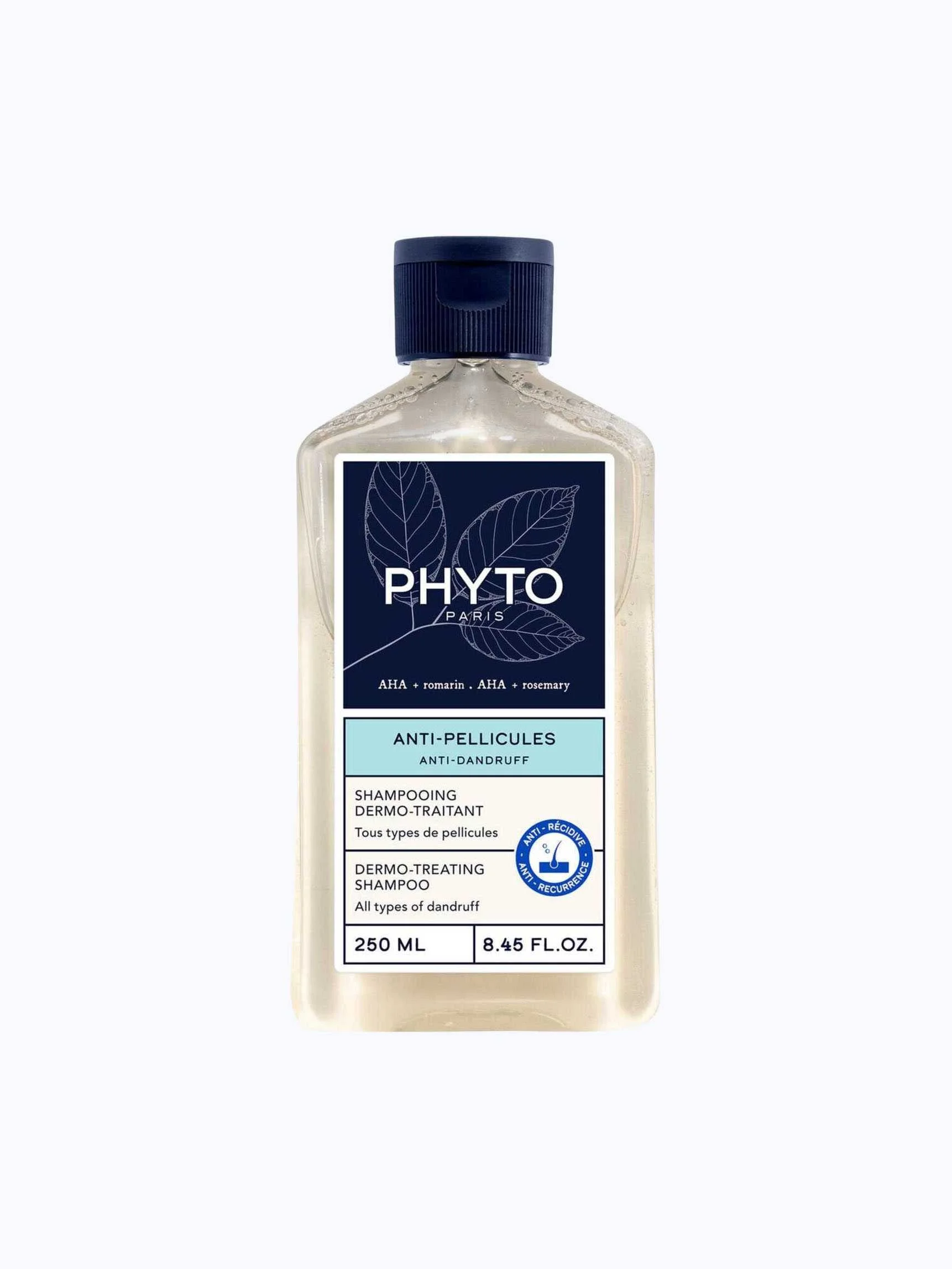 Phyto Anti-Dandruff Shampoo for All Hair Types 250ml - From the first use, the DERMO-TREATING shampoo eliminates dandruff and soothes itching sensations. It limits recurrence and rebalances the scalp as it is applied. At the heart of the formula, lactic acid (AHA) and salicylic acid (BHA) treat dandruff immediately and eliminate dead cells. Celery extract helps to permanently prevent the reappearance of dandruff thanks to its anti-recurrence action. Thanks to a rosemary extraction, the scalp is protected against external aggressions. Dermatologically tested on volunteers with moderate and persistent skin conditions. Silicone-free.