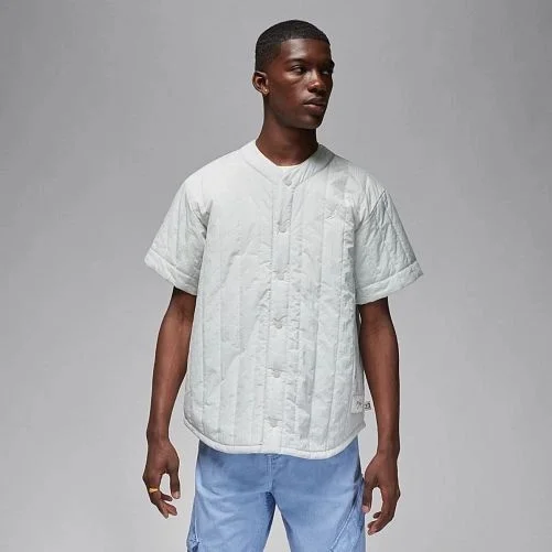 Time to go, and this is what you're wearing. With subtle branding and a tonal, textured design, this baseball jersey-inspired top is minimalist without being boring. It's made from puffy lightweight nylon material that moves with you as you cruise through your day.