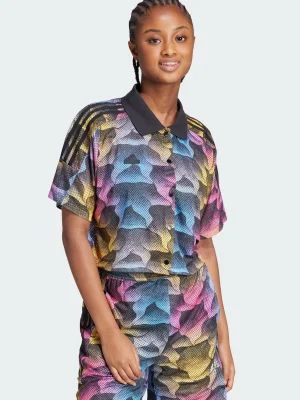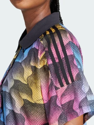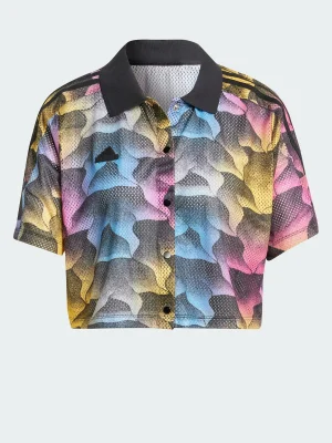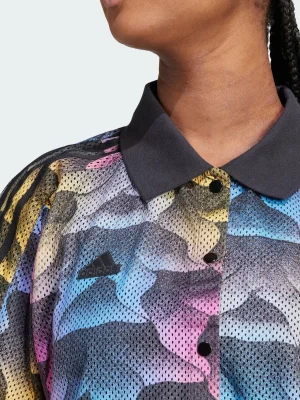 Roaming urban jungles or tropical ones, this shirt moves with your mood. The polyester mesh fabric breathes as you explore, while the loose silhouette keeps you cool on the hottest days and can be worn unbuttoned over a tank top or a two piece bathing suit. The all-over animal print is a call to adventure in the concrete or canopy. Slip into the short sleeves and polo collar, then set your sights on distant horizons. This product is made with 100% recycled materials. By reusing materials that have already been created, we help to reduce waste and our reliance on finite resources and reduce the footprint of the products we make.