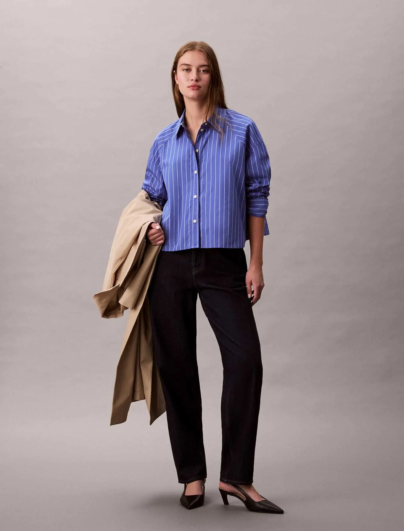 CALVIN KLEIN JEANS - YD STRIPE BOXY CROPPED SHIRT
