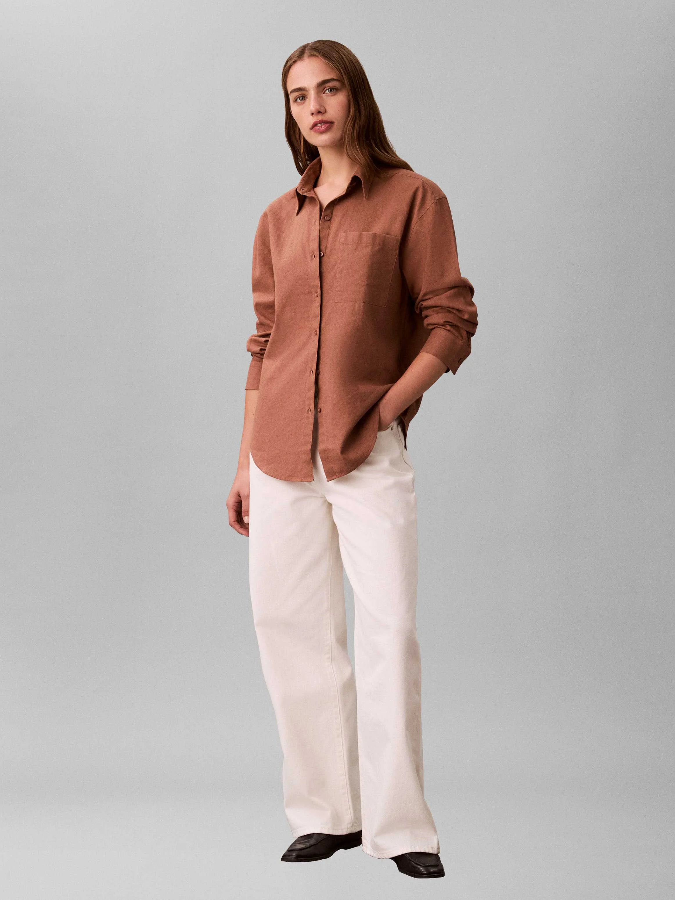 CALVIN KLEIN JEANS - Cotton Linen Roll Tab Shirt