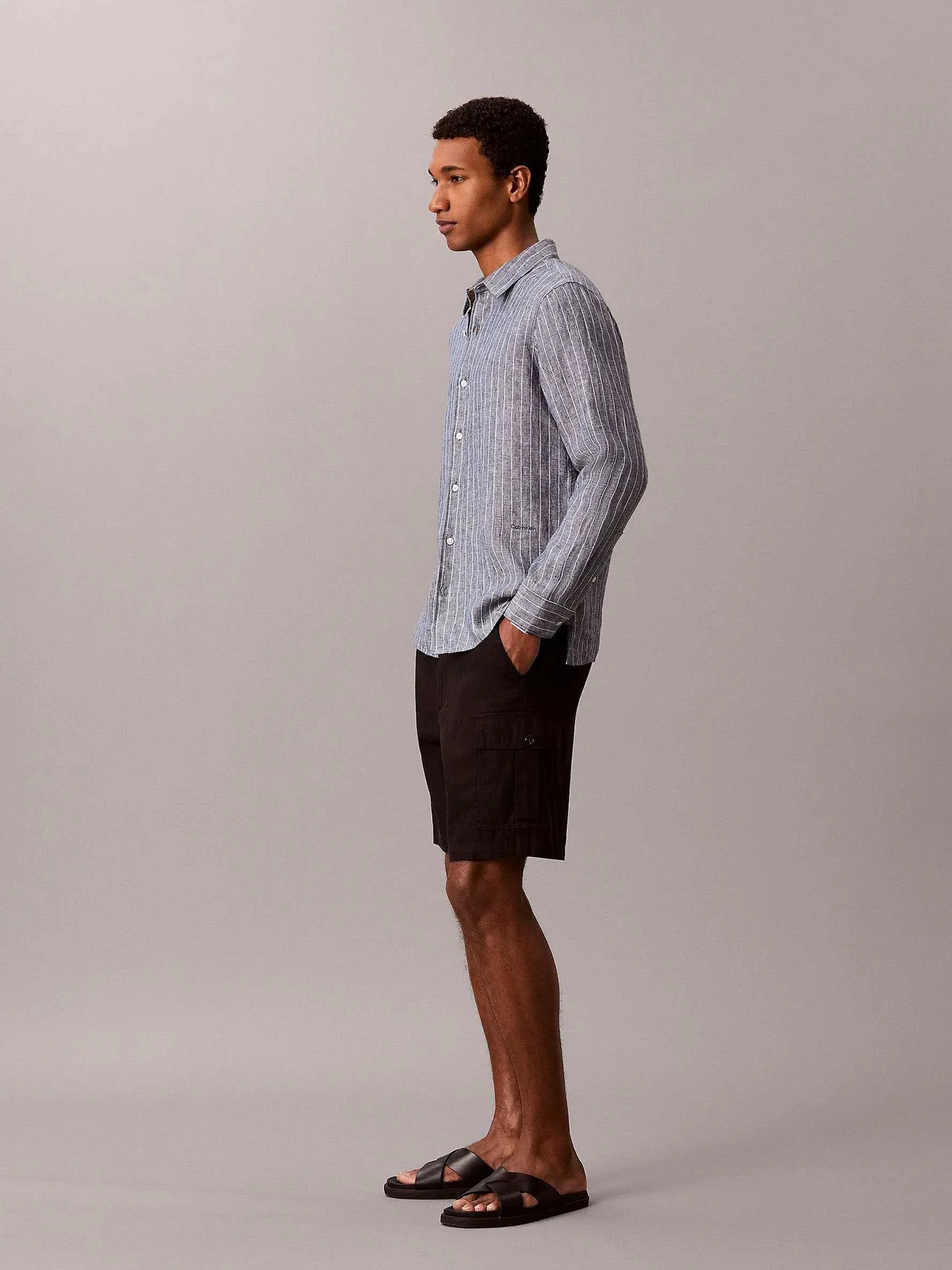 CALVIN KLEIN - LS YD PINSTRIPE LINEN CLASSIC SH