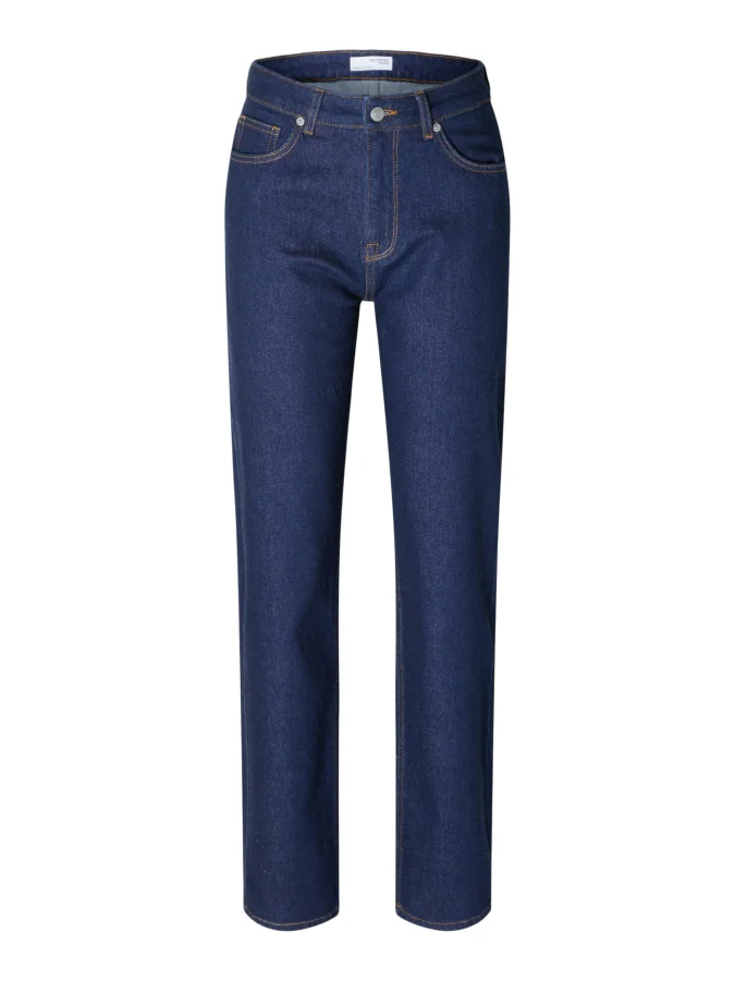 Selected Straight Fit Jeans – high-waisted jeans with a classic, structured silhouette. The straight cut and cropped length create a modern and versatile look, while practical pockets and a zip fastening provide comfort and functionality for everyday wear.