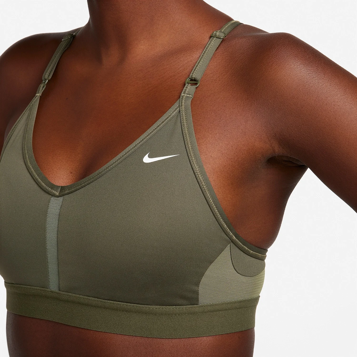 Nike Dri-FIT Indy Sports Bra – delivers simple, adjustable support with breathable comfort. Designed with at least 50% recycled polyester fibers, it features removable pads, soft fabric, and mesh panels for a customizable, all-day fit.