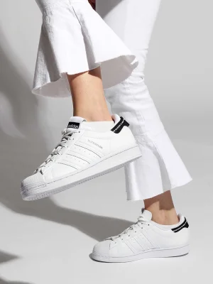 adidas Superstar Shoes made in part with recycled materials.Since its '70s debut, the adidas Superstar trainer has been on a constant journey of change. It hopped off the hardwood to make a name for itself in the music scene and then spread to become a style icon around the world. Now it's evolving to help end plastic waste. The traditional upper is swapped for a synthetic one, and the heel strap and tongue webbing are made with ocean plastic collected from the beach.