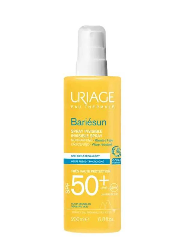 Uriage BARIÉSUN - INVISIBLE SPRAY SPF50+ 200ml - combines a very high-performance filter complex and two dermatological patents to protect the skin, prevent cellular damage and photoaging caused by UVA and UVB rays and blue light.