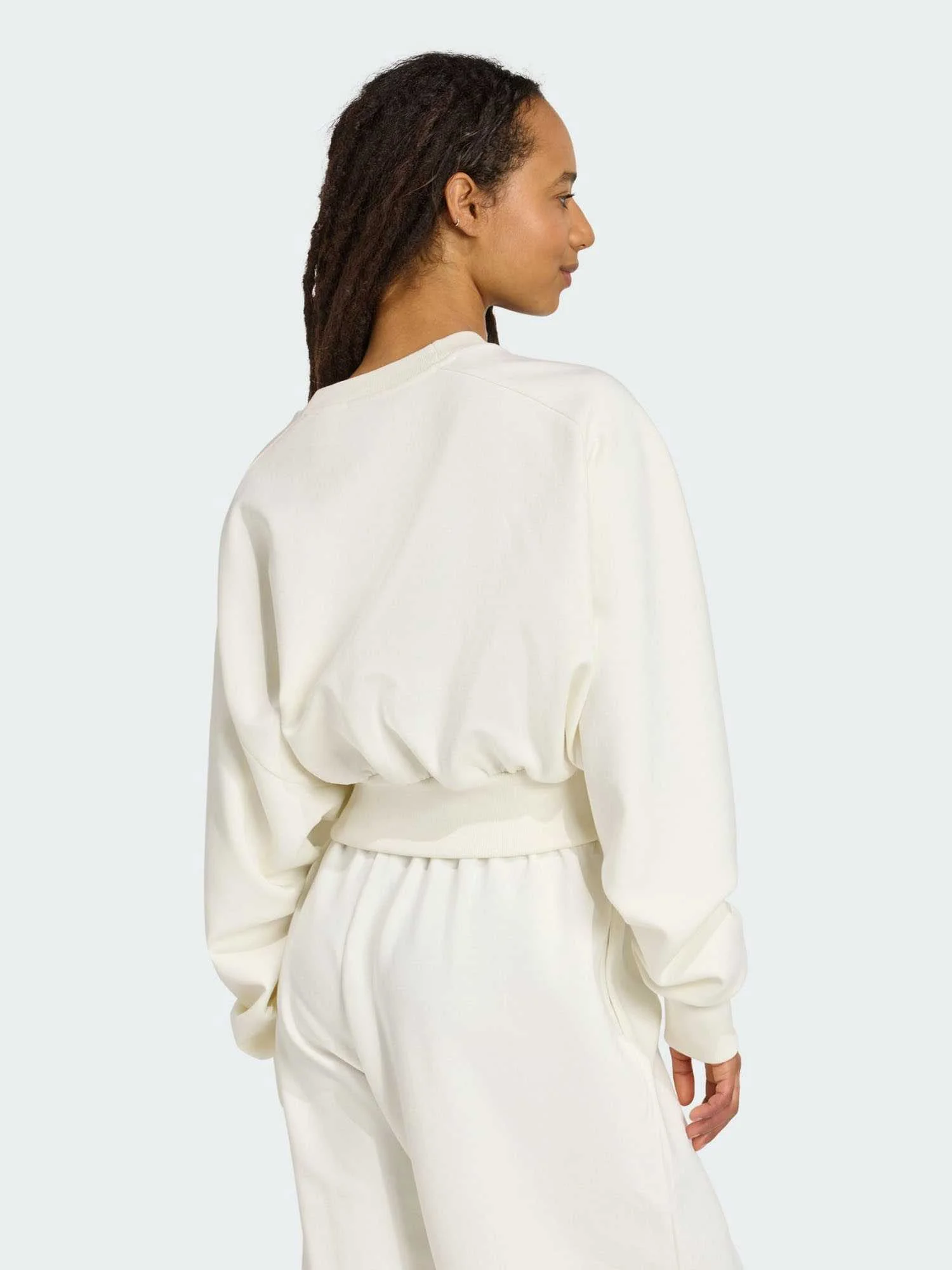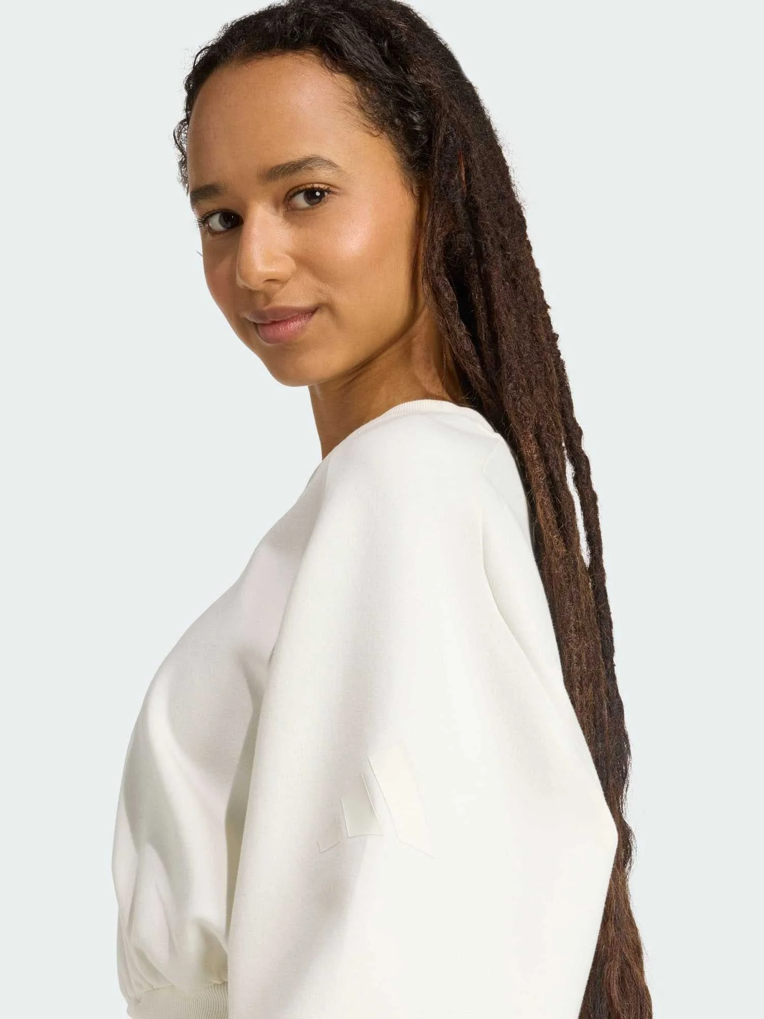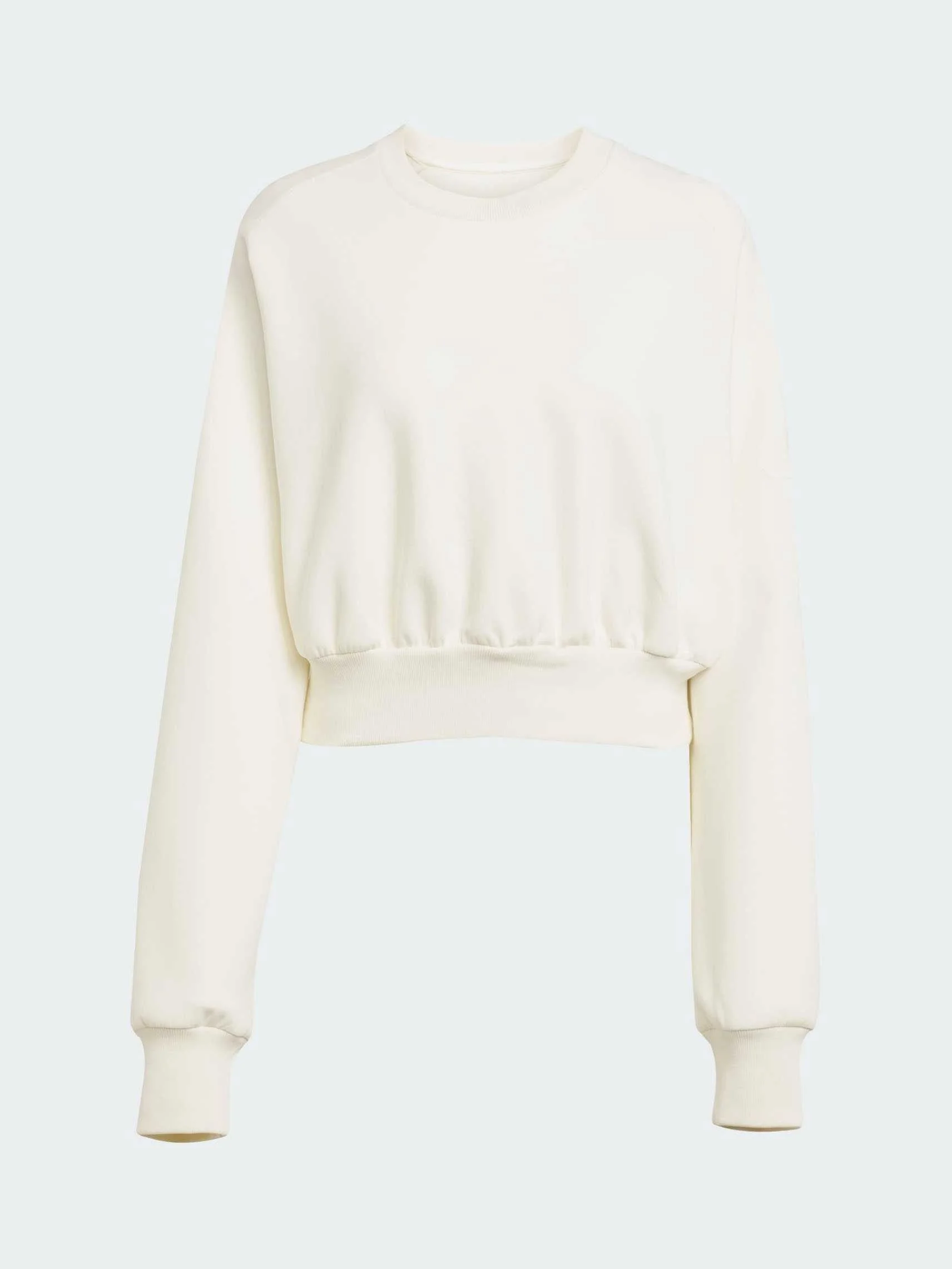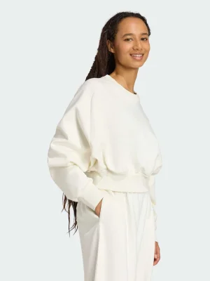 In this adidas sweatshirt, comfort and style are one. Slip into its soft yet lightweight fabric and let its loose, leisurely fit give you room to move. Raglan sleeves lend a sporty look, perfect for pairing with joggers or leggings.