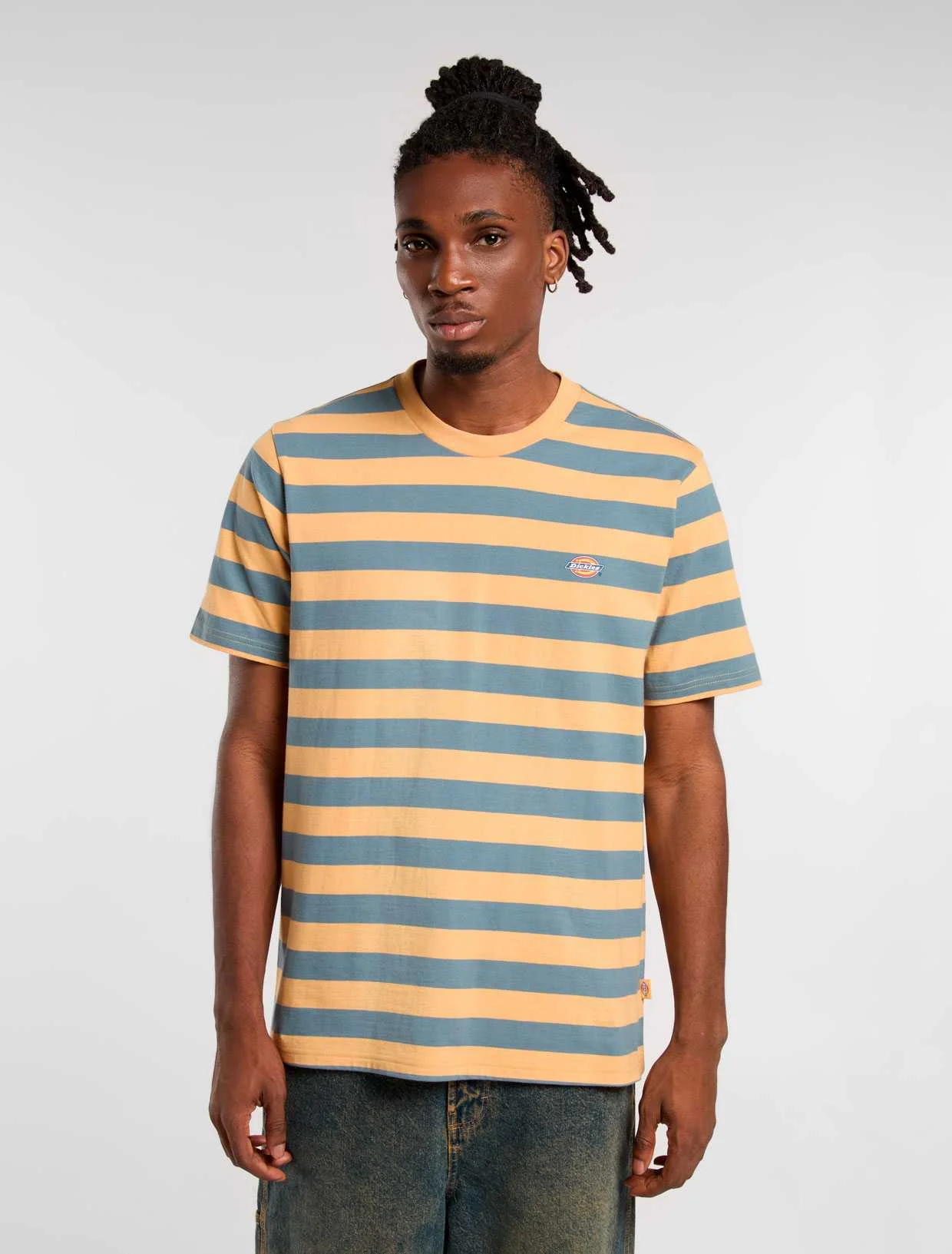 The Dickies Rivergrove Stripe T-Shirt is a stylish and comfortable tee featuring a classic horizontal stripe pattern. Made from a soft cotton, it offers a relaxed fit with a crew neck and short sleeves. The subtle stripes add a touch of casual style, while the small Dickies logo on the chest reflects the brand's quality. Perfect for everyday wear, this t-shirt pairs well with jeans or shorts.