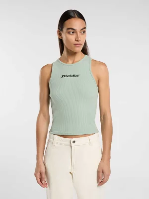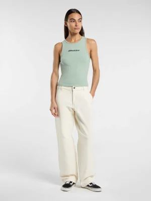 Dickies Lightweight Rib Top – A perfect top for the warmer season, designed in a slim fit for comfort and ease of movement. Made from partially recycled knitted cotton with a slight stretch, it feels soft and flexible. The style features a regular length, deep scoop neckline, contrast details, and a printed Dickies logo on the front, with a woven brand label on the side.