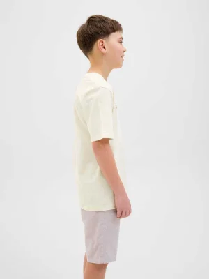 Jack & Jones Junior Regular Fit T-shirt – a simple and versatile T-shirt that pairs effortlessly with any wardrobe piece. The treated jersey fabric is soft, stretchy, and pleasant against the skin, making it both comfortable and practical for everyday wear. Classic design meets modern energy in this piece, making it ideal for school or casual leisure time.