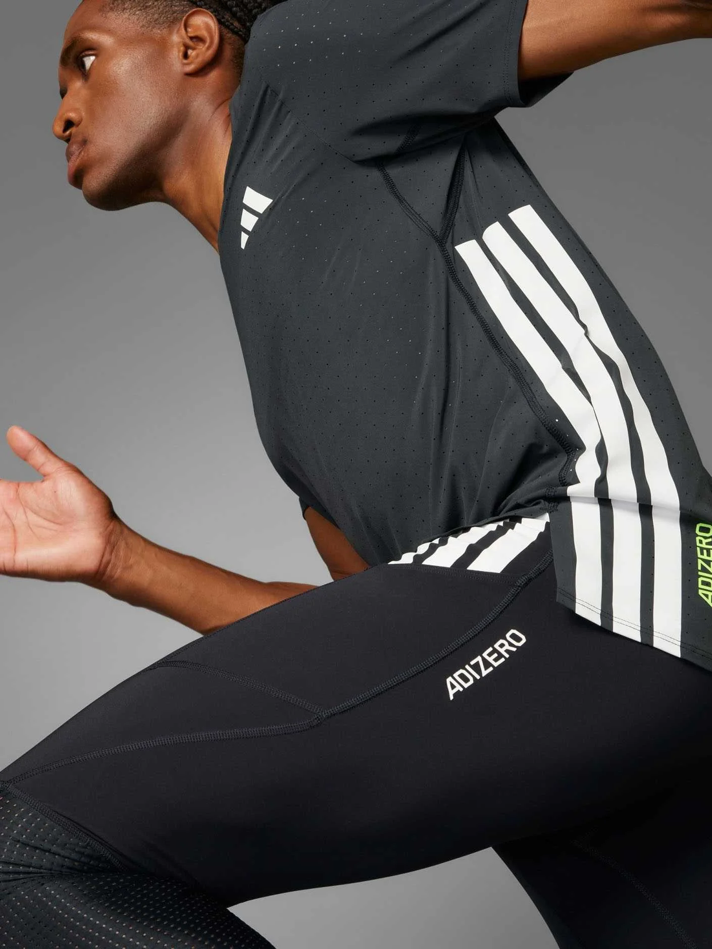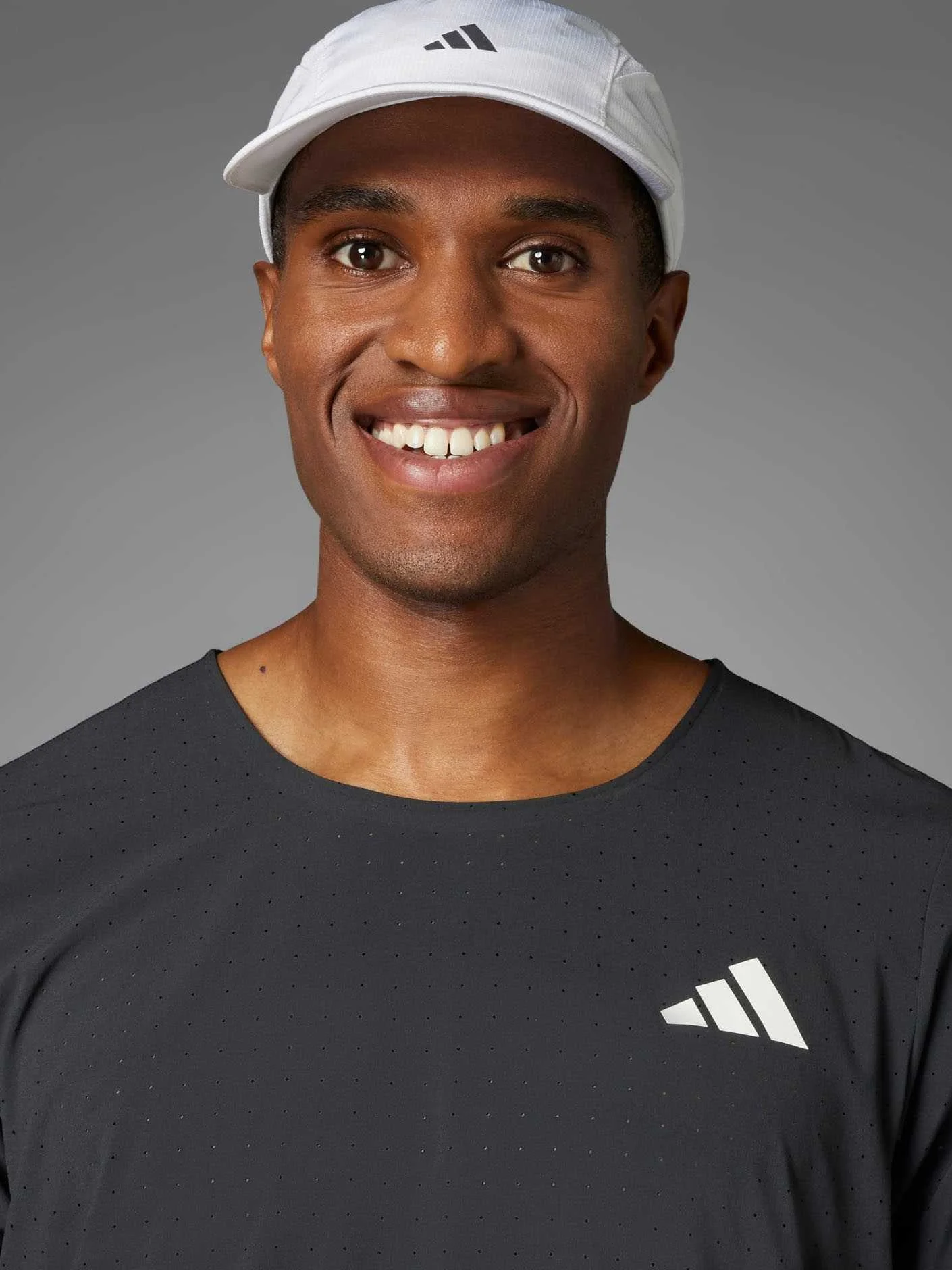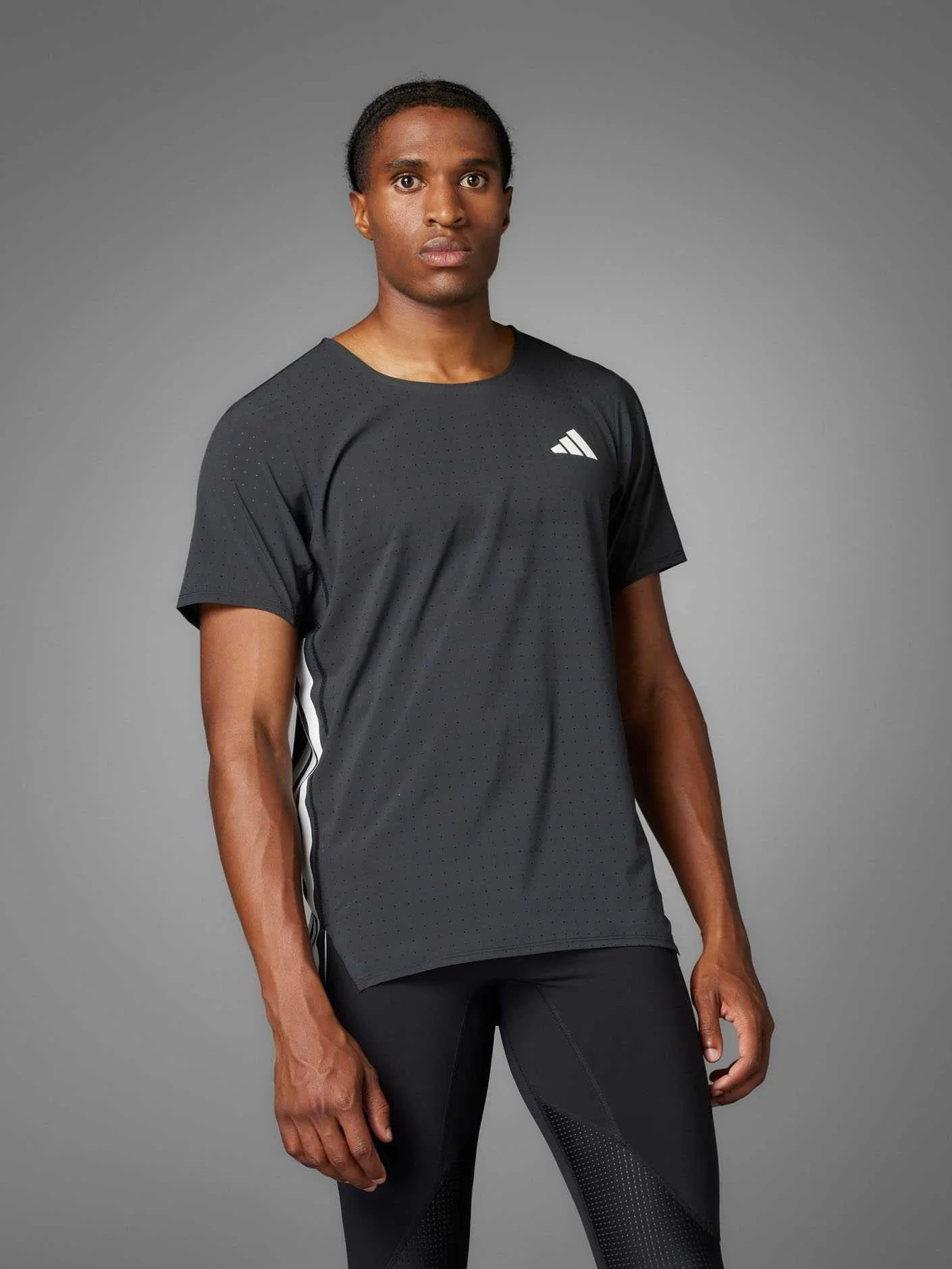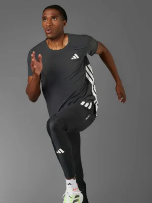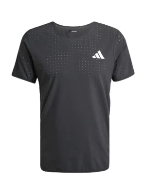 Offering everything you need and nothing you don't, this adidas running tee has a slim, aerodynamic silhouette with built-in flex. The light, perforated fabric ensures fresh air reaches your skin as you test your limits, so you can tune out distractions and focus on achieving your running goals.