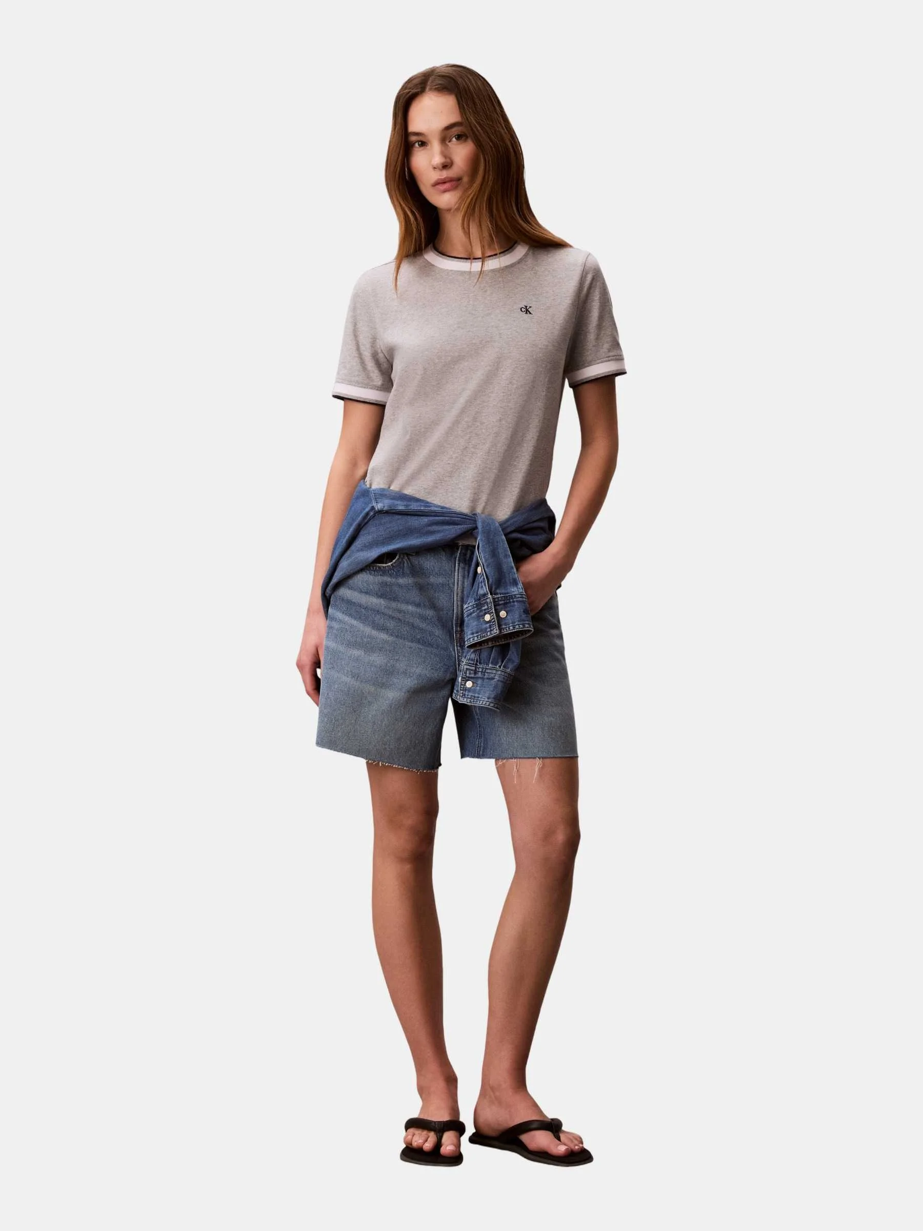 CLAVIN KLEIN JEANS - SS CTN MONOGRAM STRIPE TRIM TEE