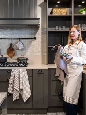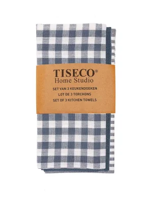 Tiseco XL LINES Kitchen Towel – Set of 3 – 50x70 cm, Blue – A set of three functional kitchen towels, each with a unique design (striped, waffle, and checkered). Made of 100% cotton, they feature durable edges and a convenient hanging loop. The neutral yet elegant style creates a pleasant atmosphere in the kitchen.