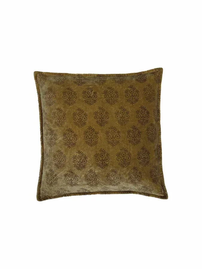 Noble velvet cushion with an Indian print on it. Our cushions are made from artisanal cotton, grown in India with deep respect for the environment. Each raw fiber demonstrates our commitment to sustainable practices, providing a unique and eco-responsible experience.