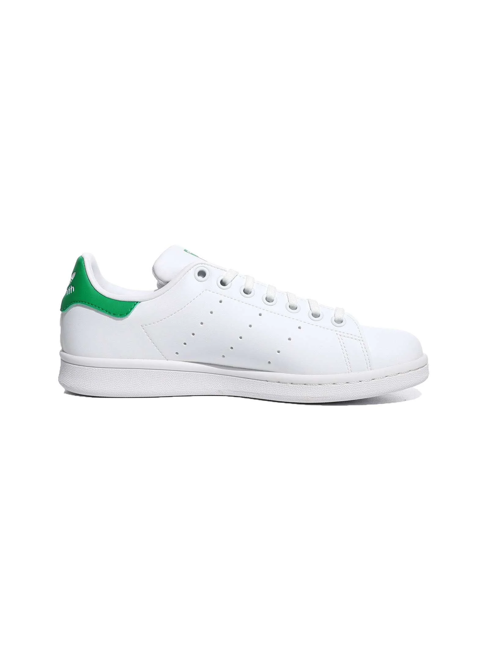 • Stan Smith logos on the tongue and heel tab are paired with three perforated stripes.
