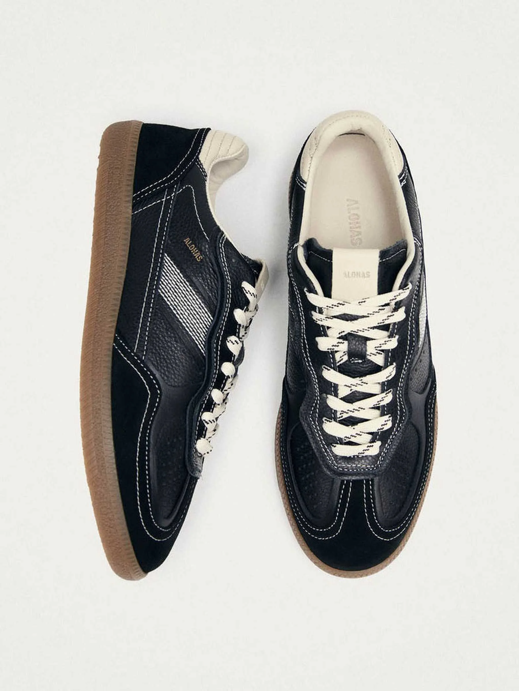 ALOHAS - Tb.490 Rife Grain Black & Cream Leather Sneakers